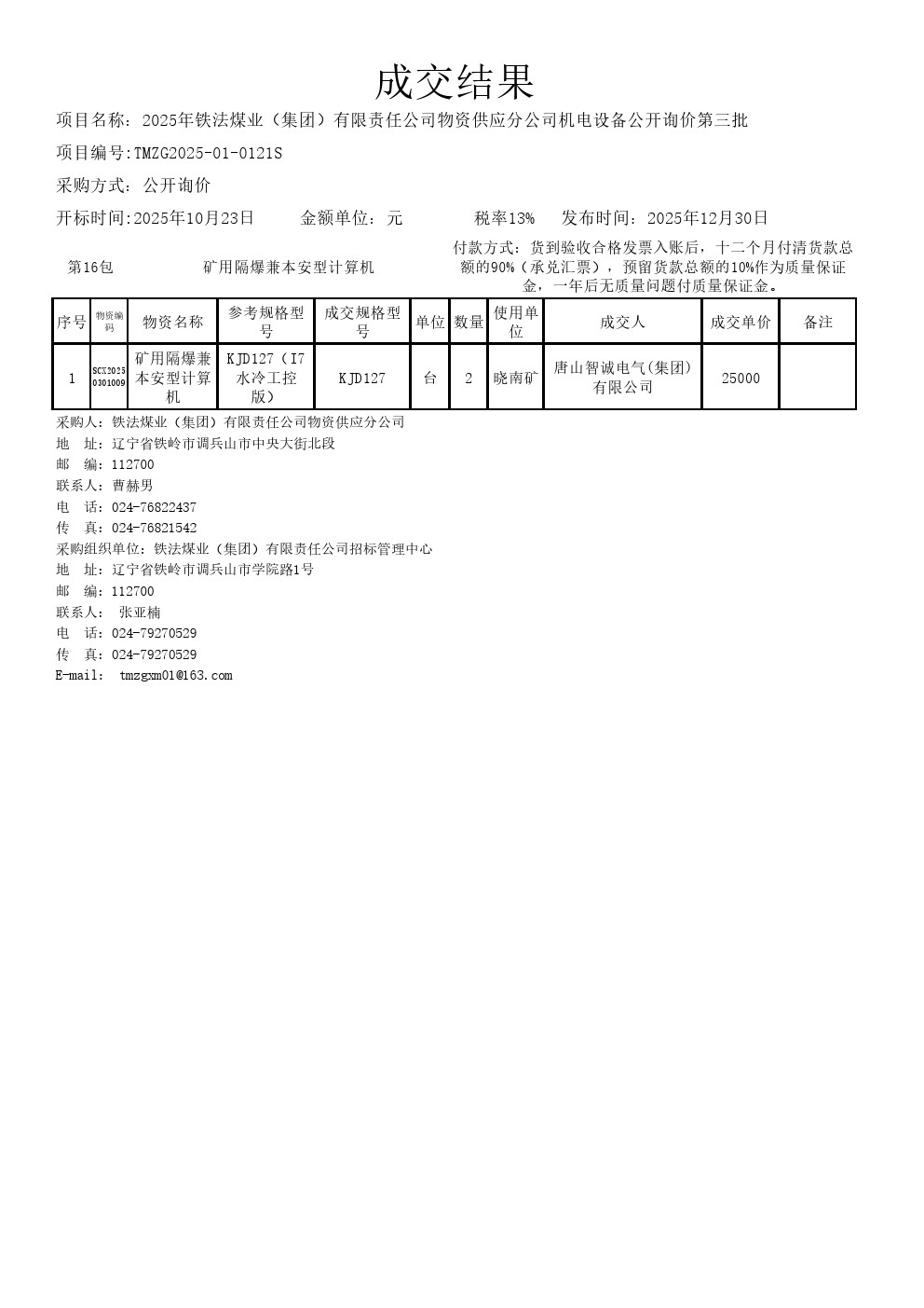 2025年10月23日机电设备公开询价成交结果公示(0121S)