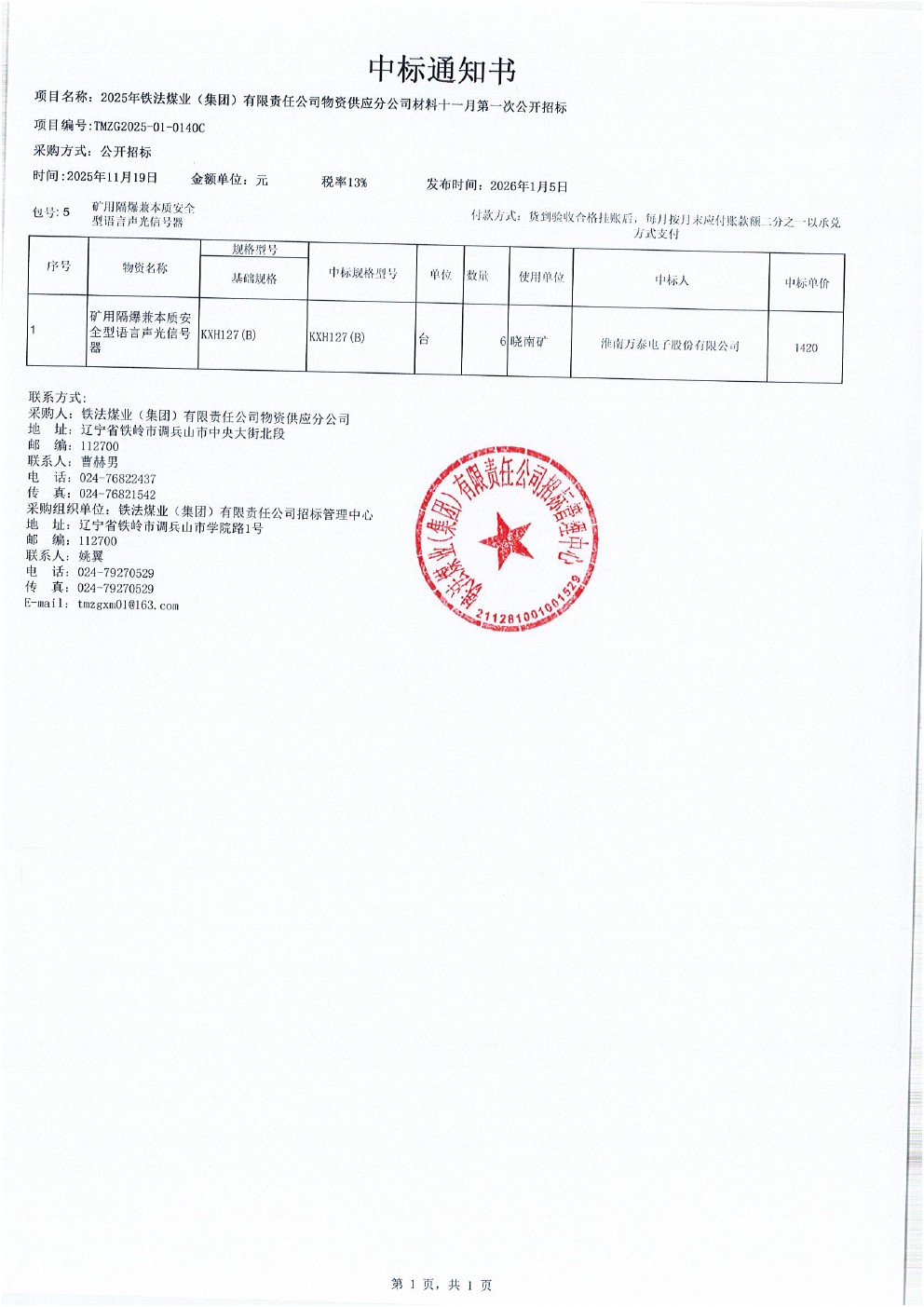 2025年11月19日材料公开招标中标通知书(0140C)5