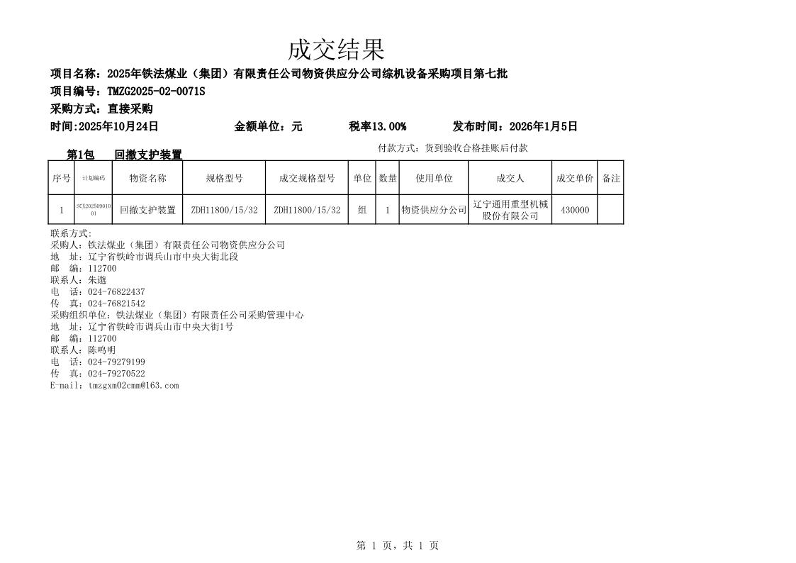 2025年10月24日综机设备成交结果(0071S)