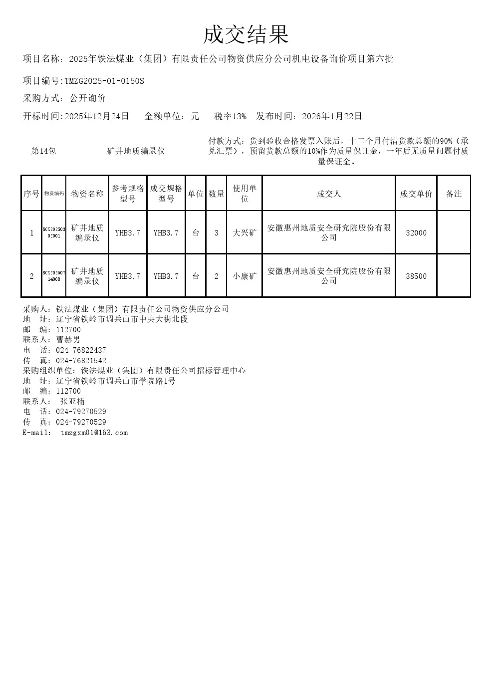 2025年12月24日机电设备公开询价成交结果公示(0150S)