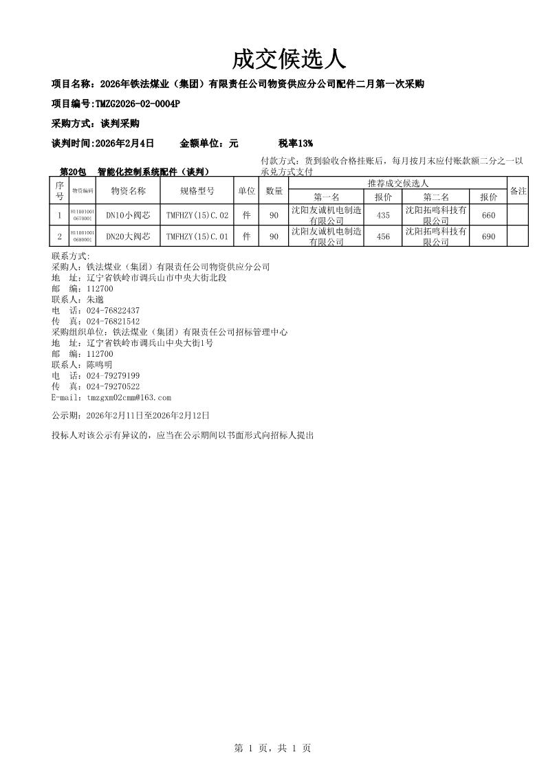 2026年2月4日配件谈判成交候选人(0004P)