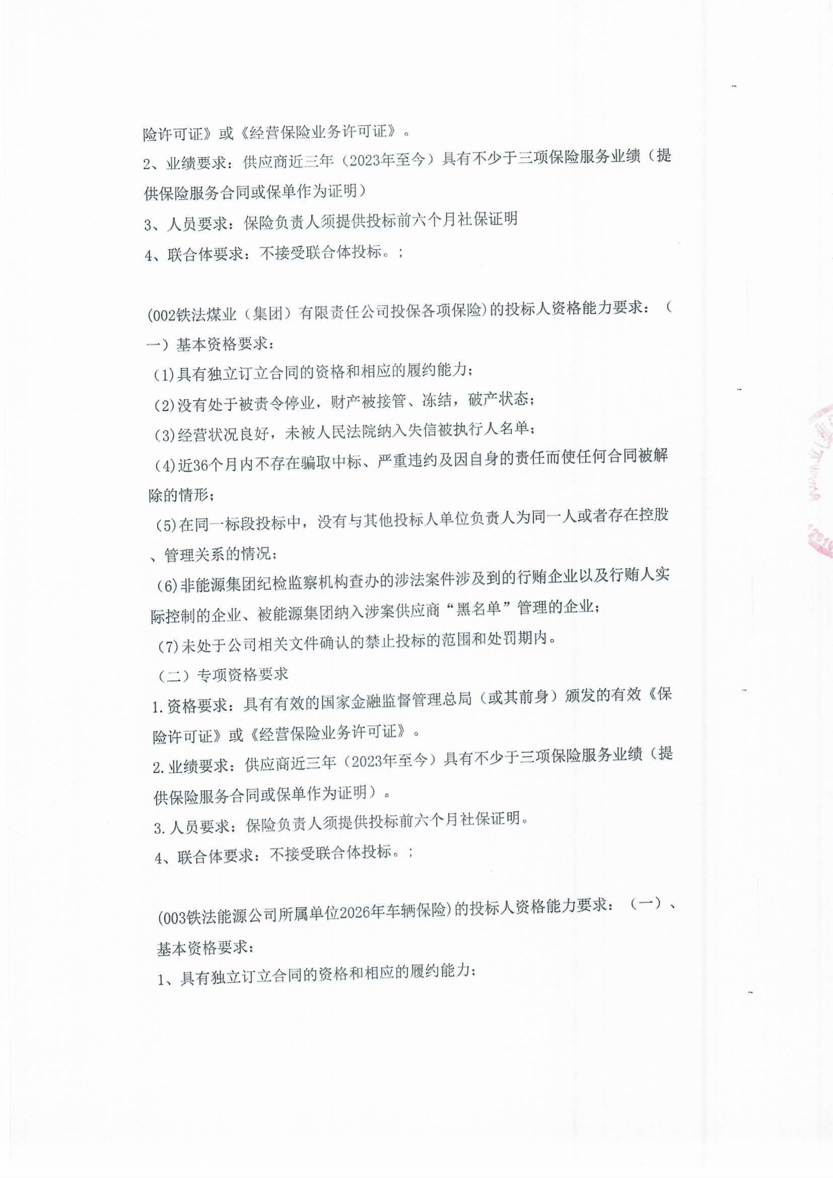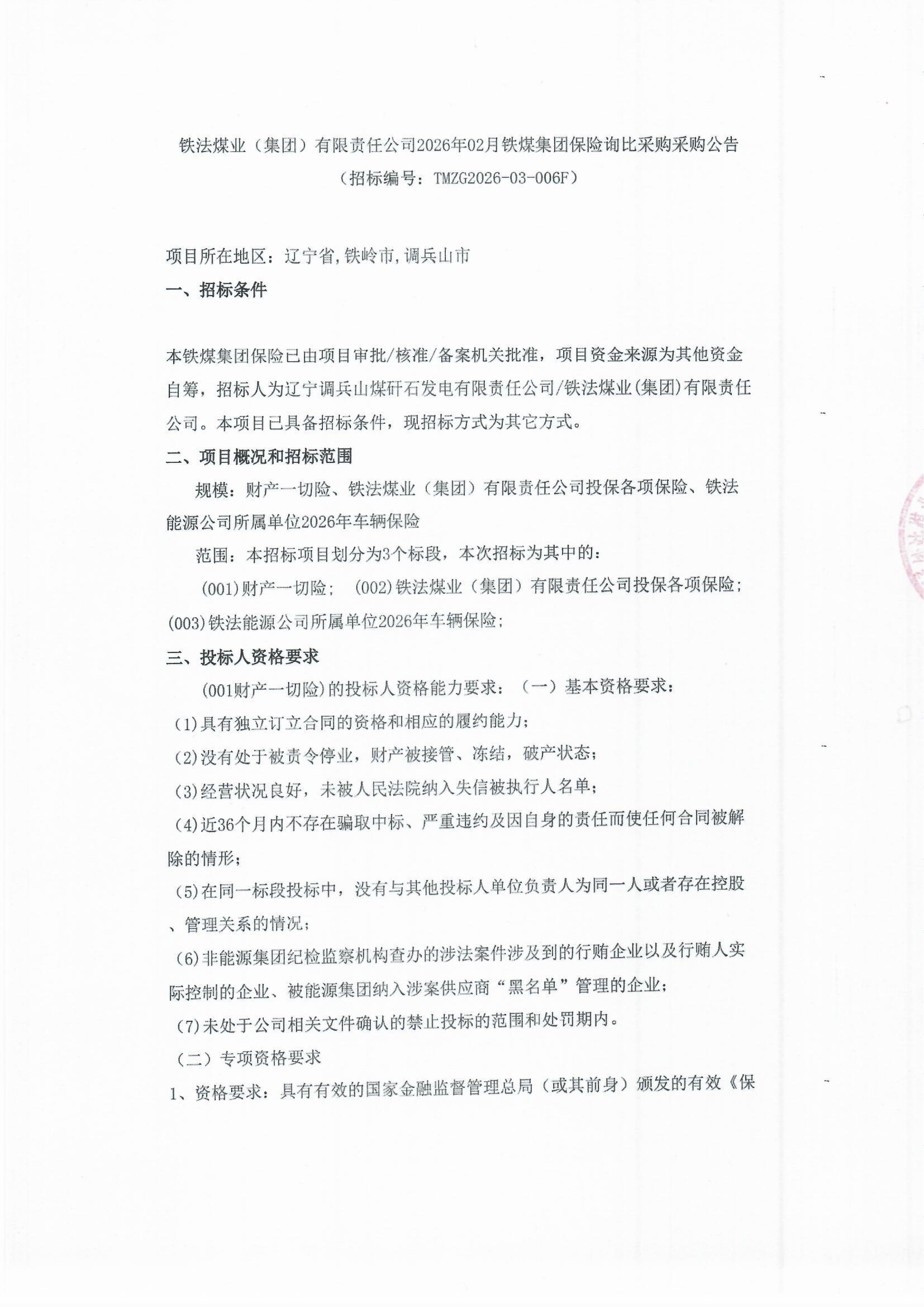 铁法煤业(集团)有限责任公司2026年02月铁煤集团保险询比采购采购公告