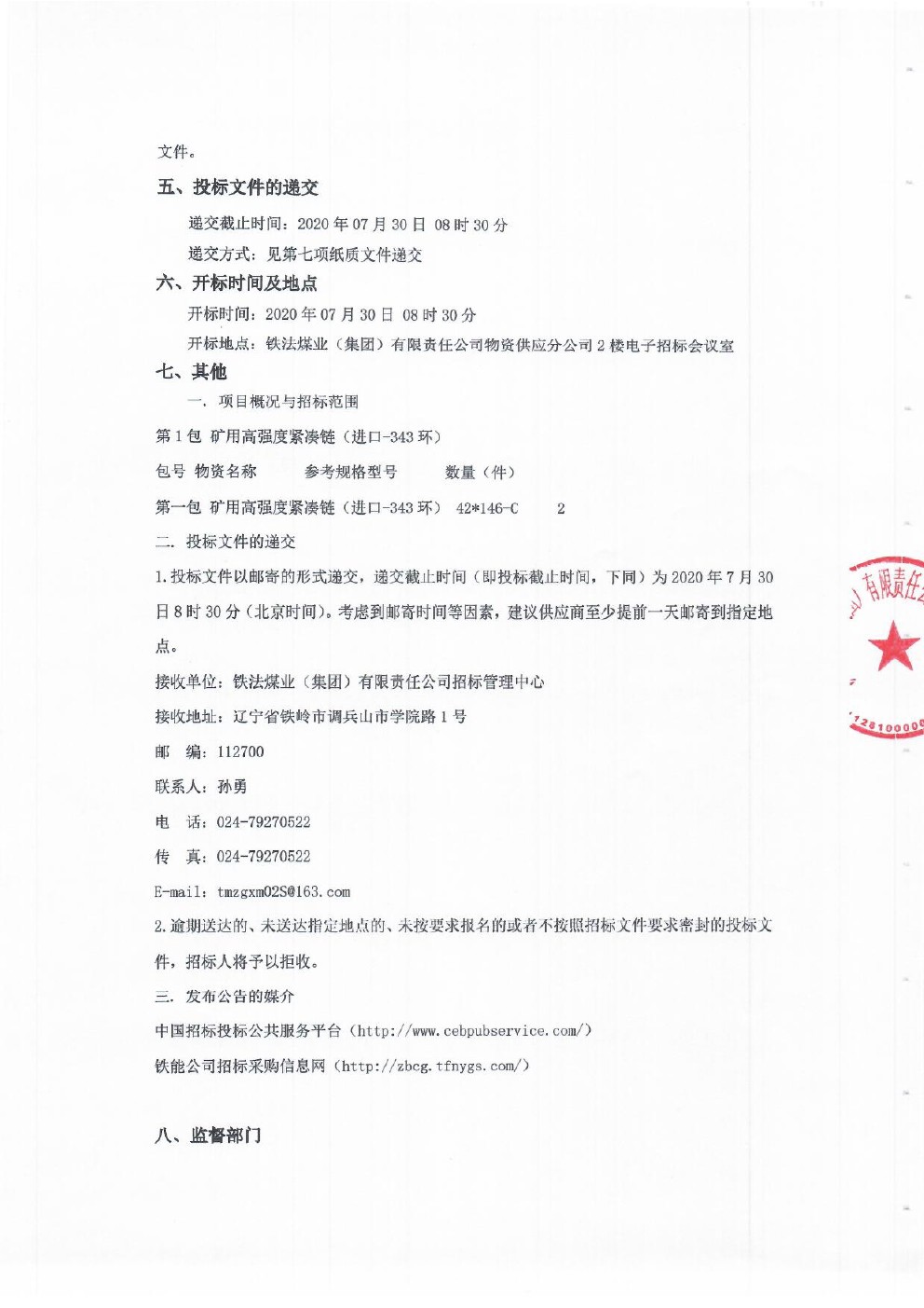 2020年7月30日综机配件公开招标第二批