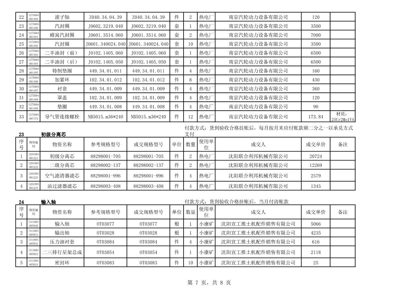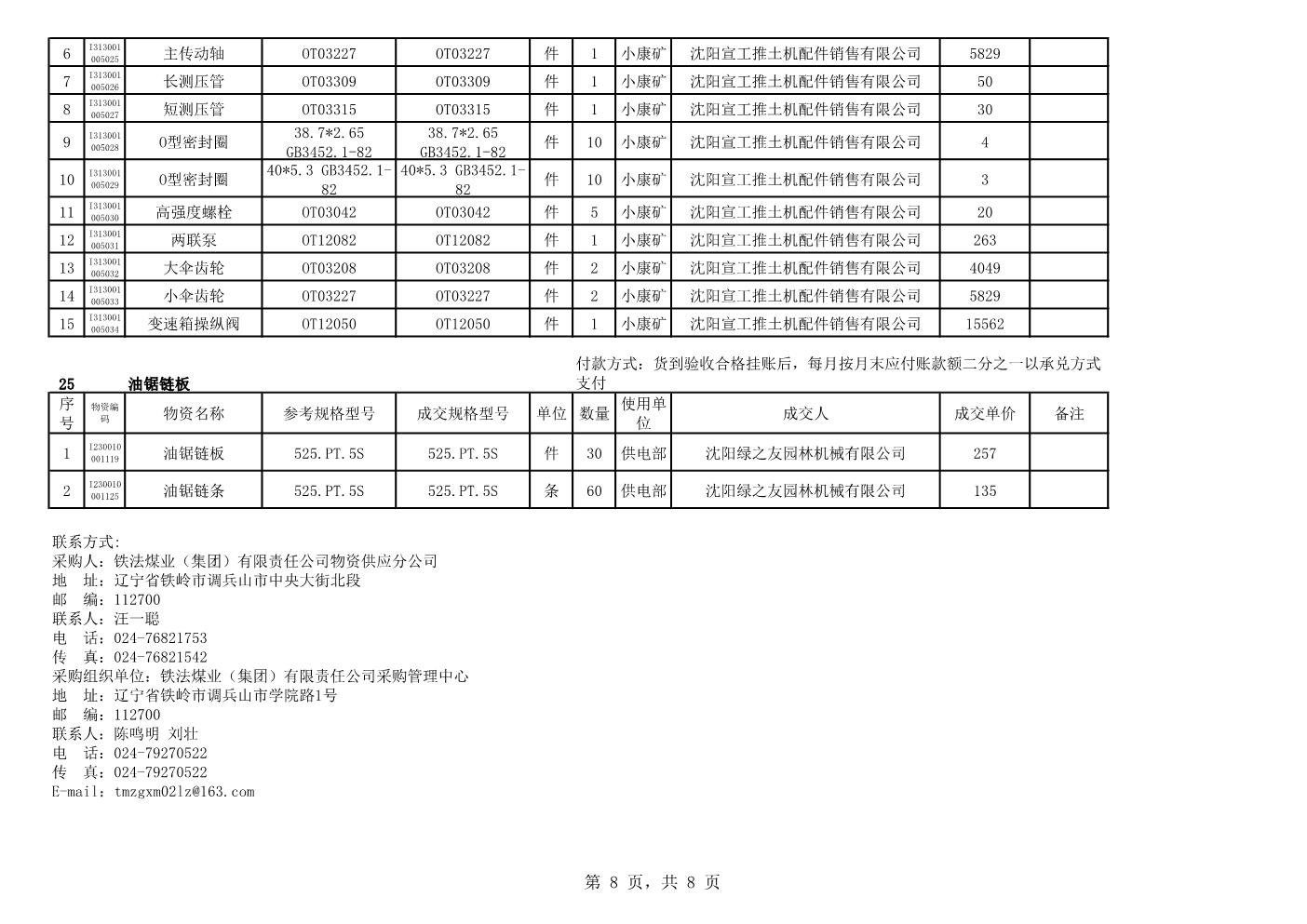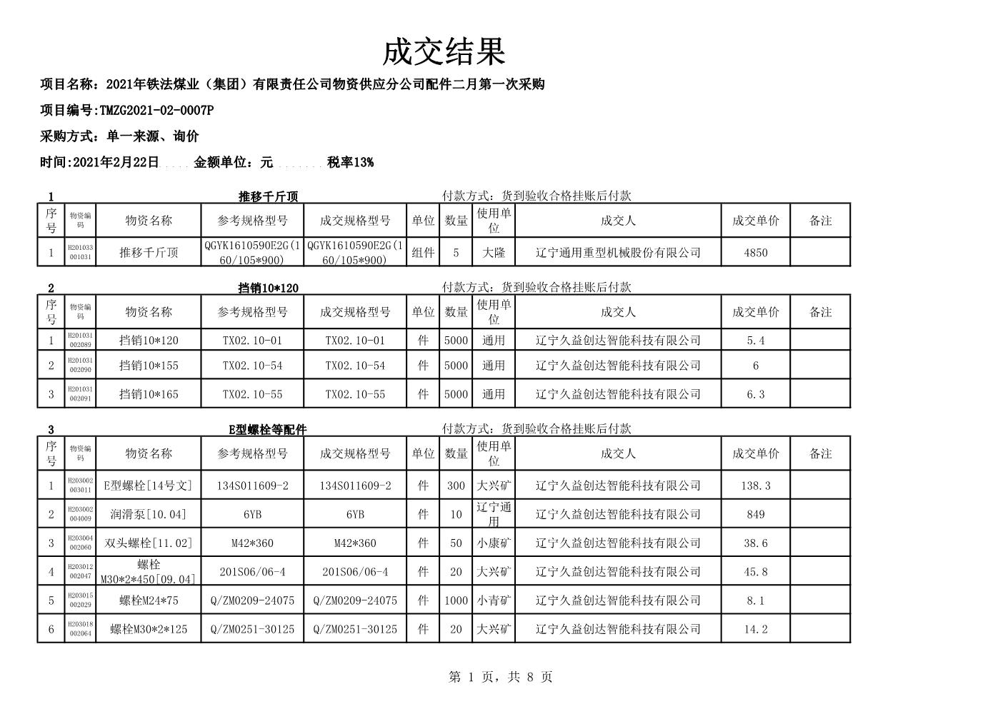 2021年2月22日配件成交结果公告