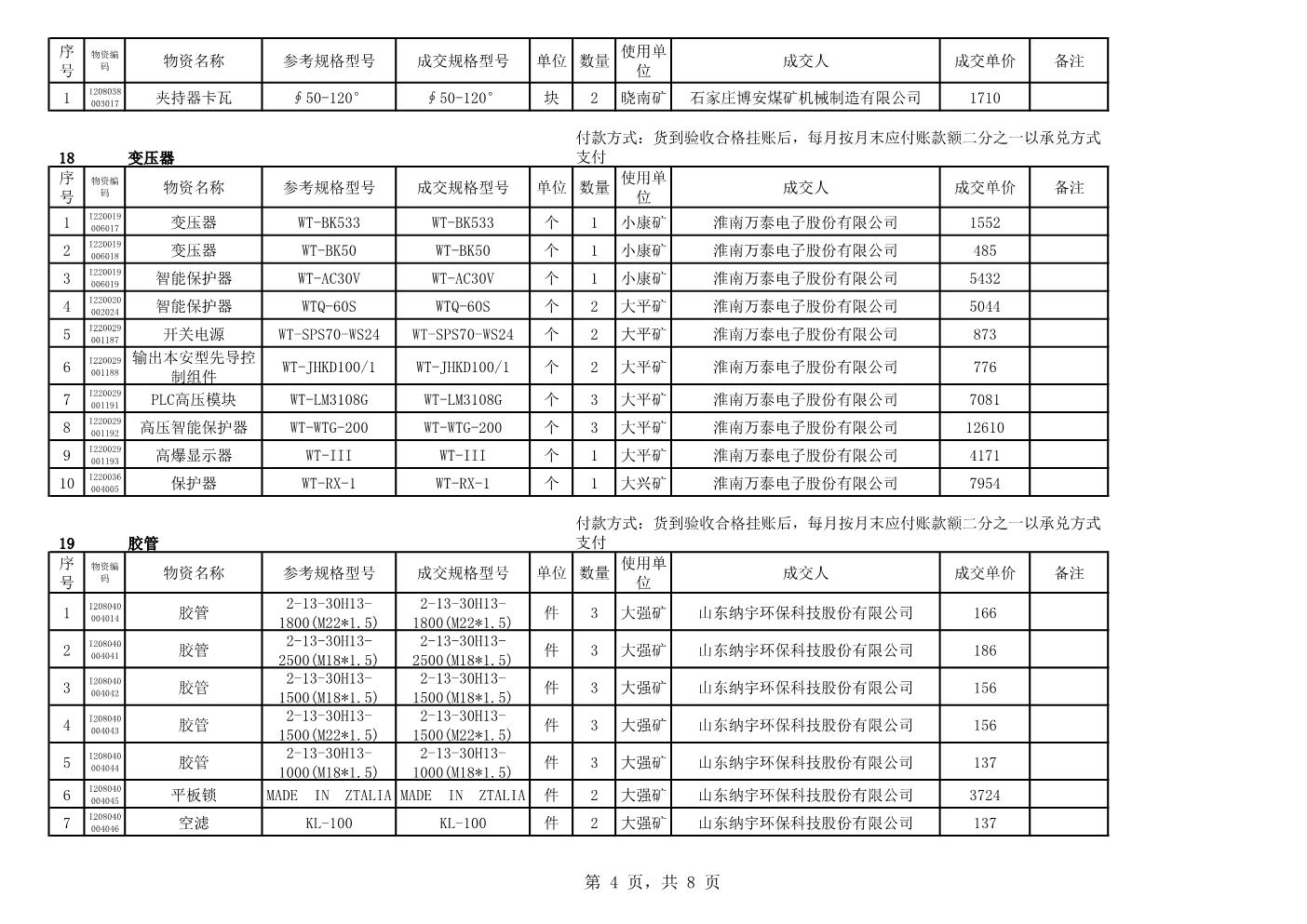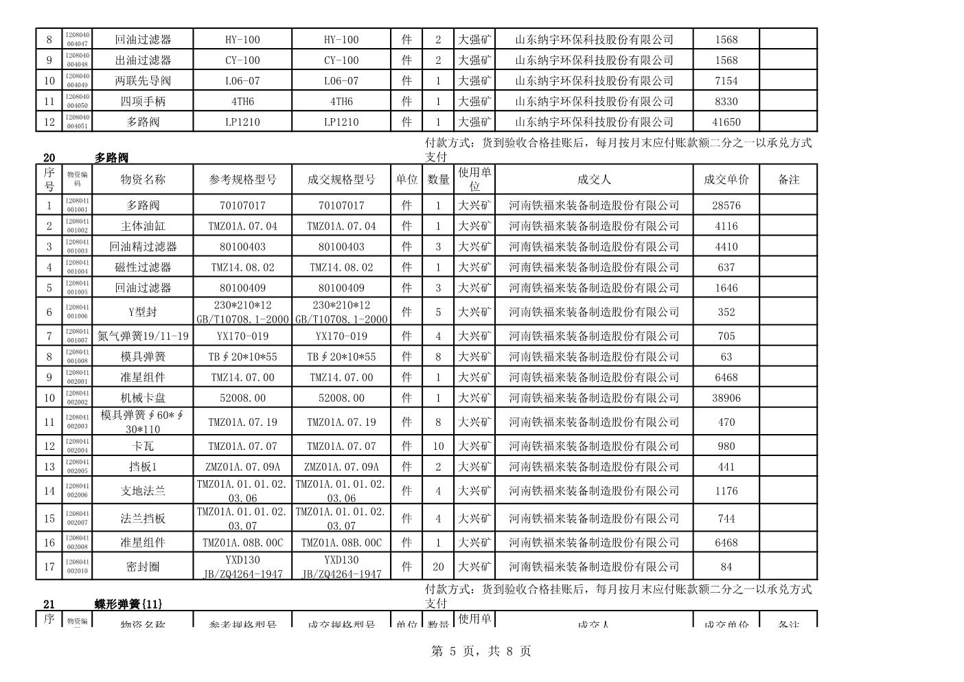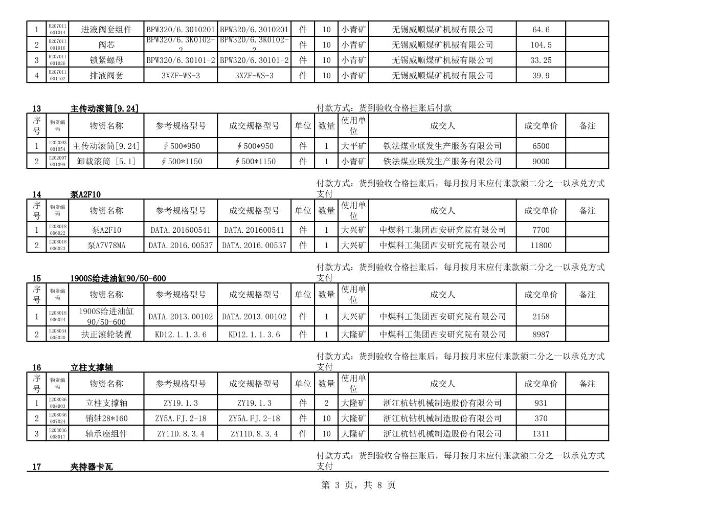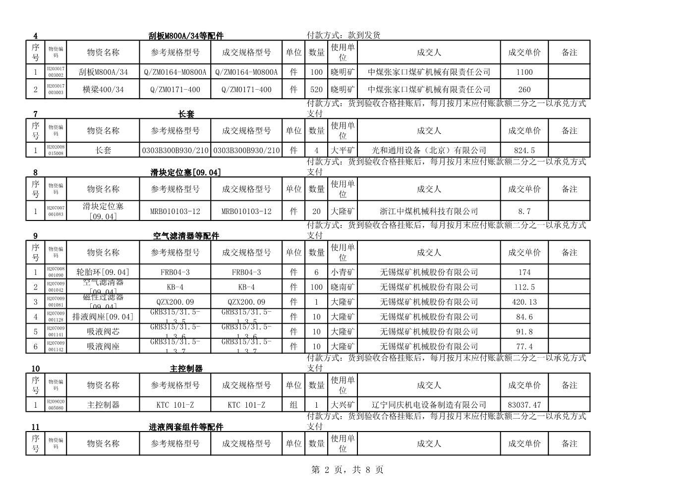 2021年2月22日配件成交结果公告