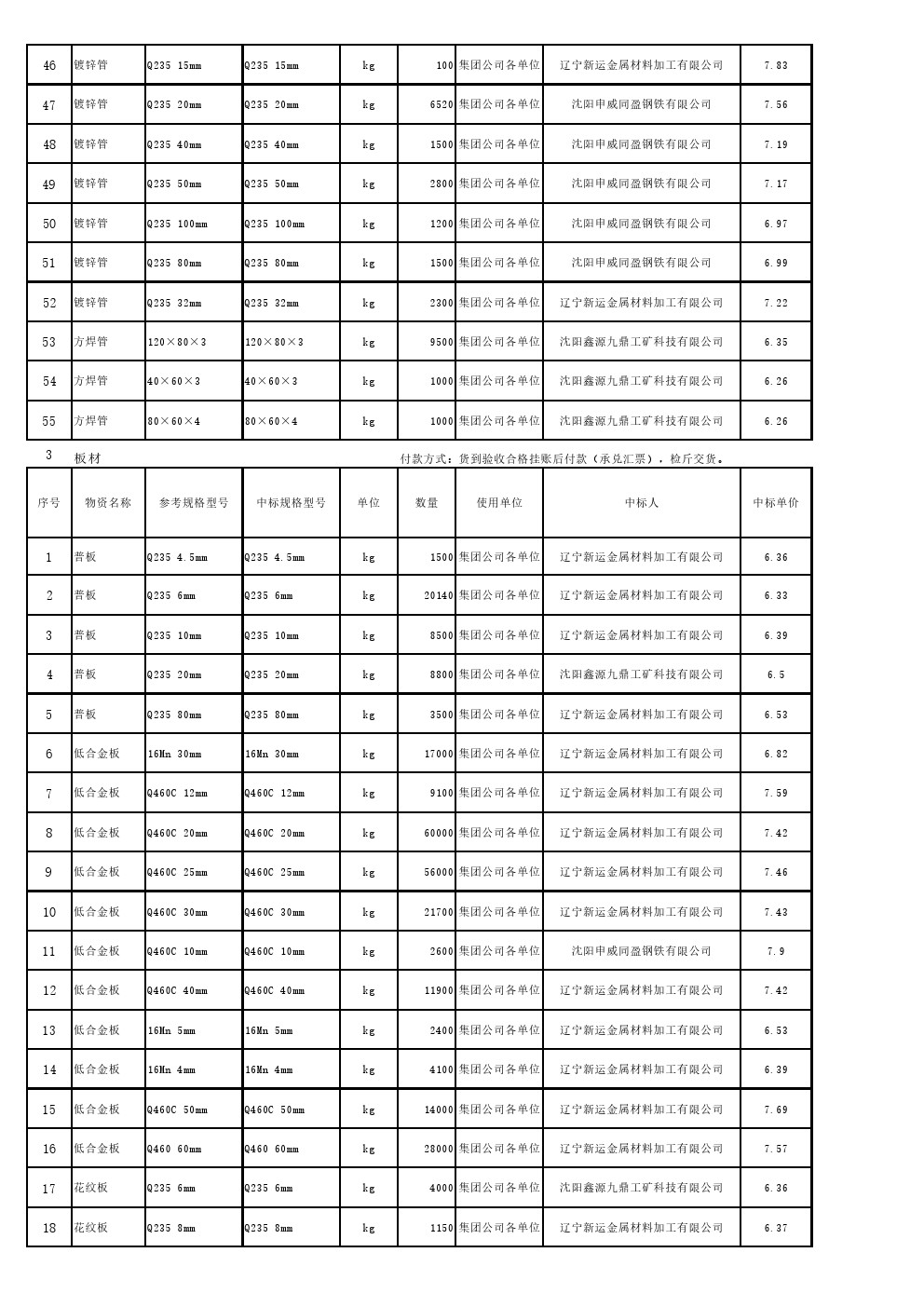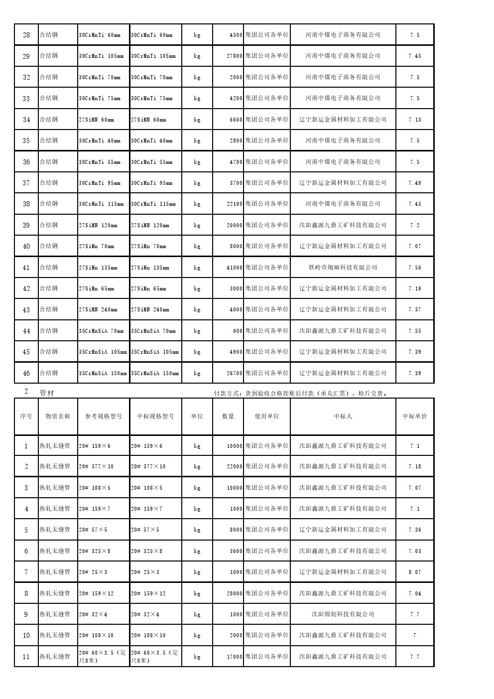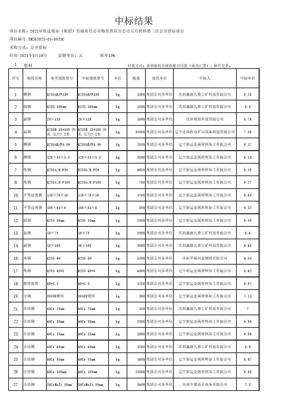2021年5月19日材料公开招标中标结果公告