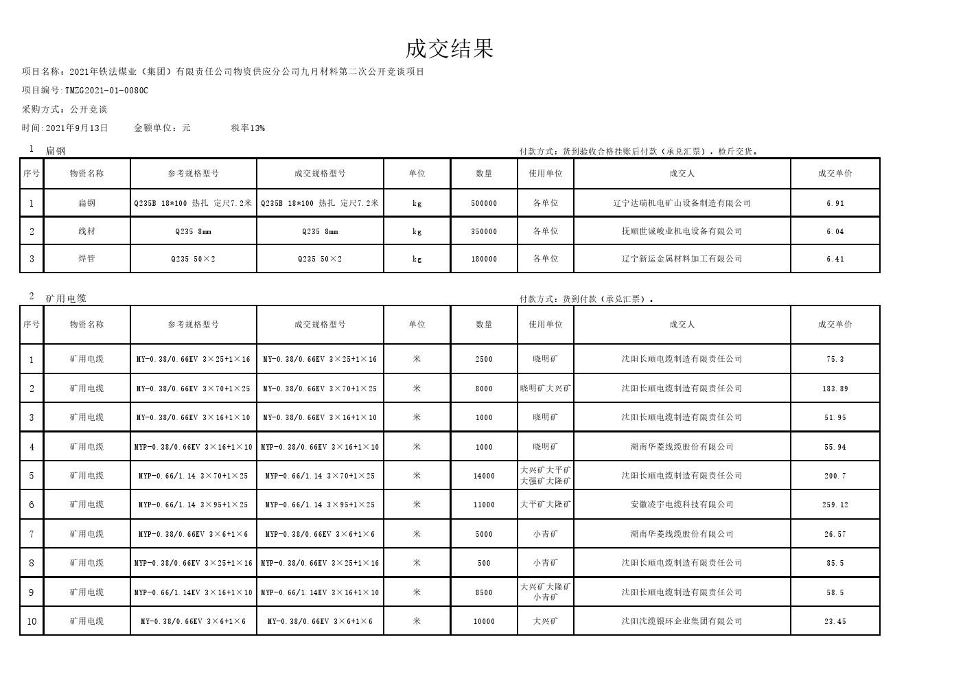 2021年9月13日九月第二次公开竞谈成交结果公告