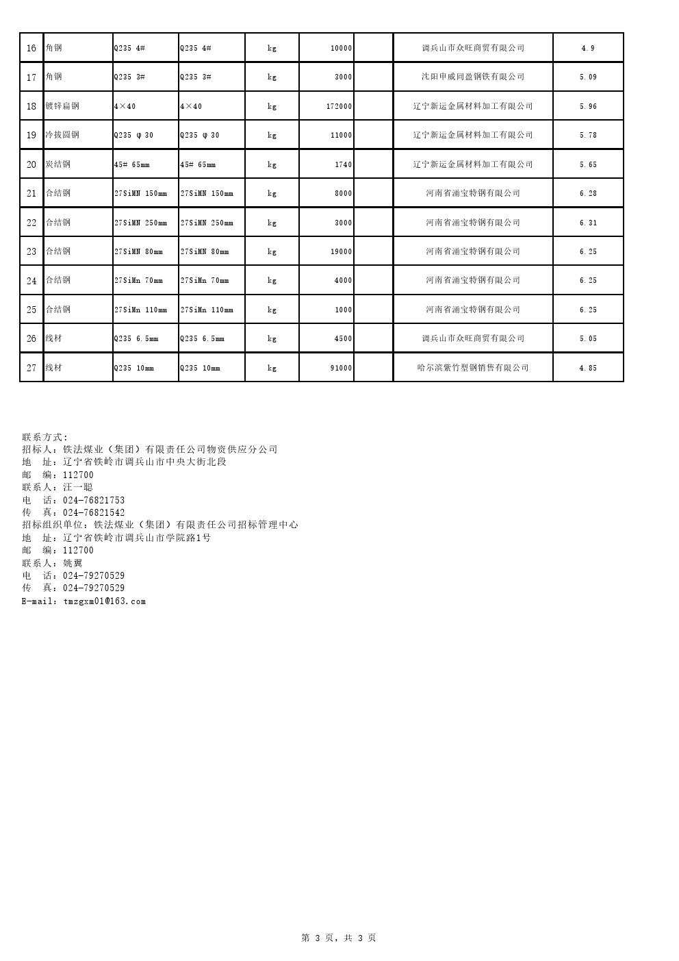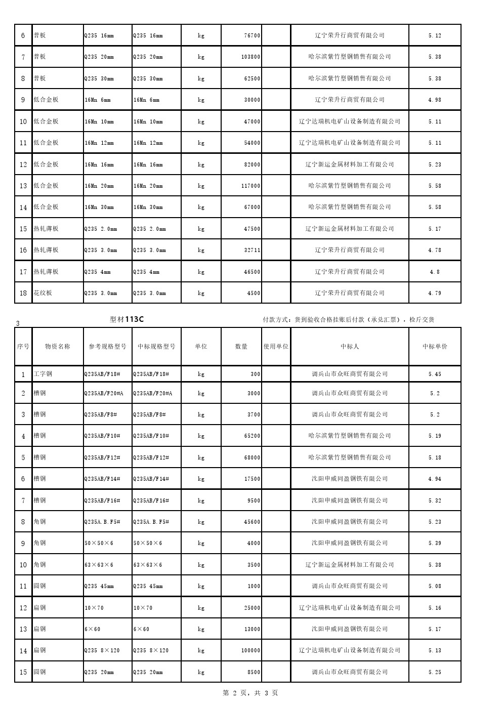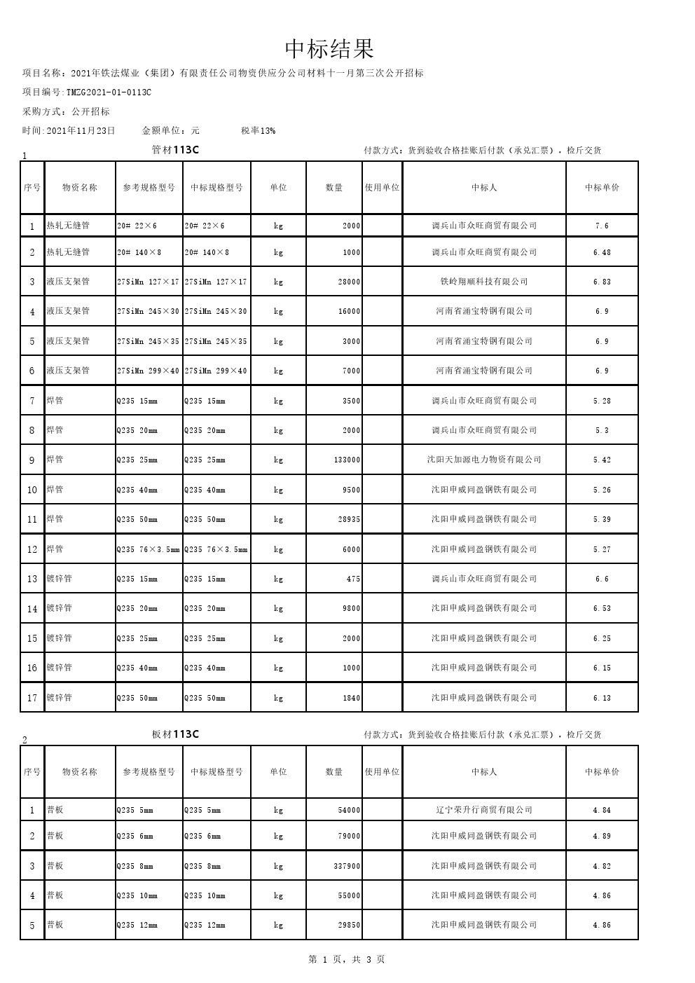 2021年11月26日材料十一月第三次公开招标中标结果公告