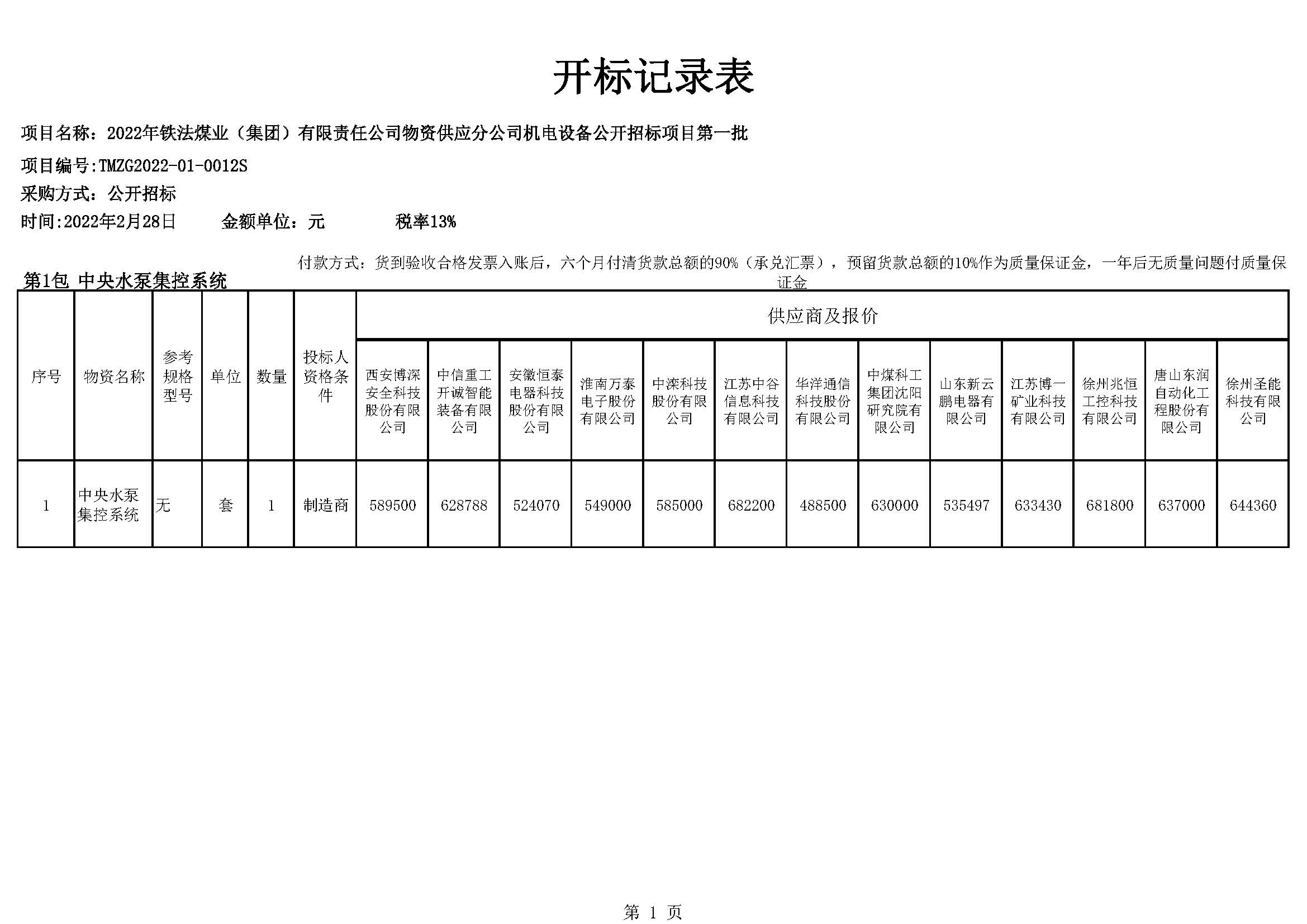2022年3月4日机电设备开标记录表