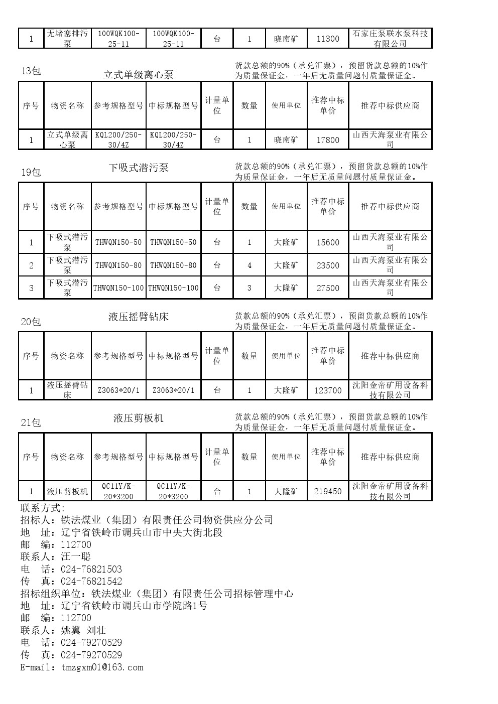 8月23日设备公开招标第三批中标结果公示