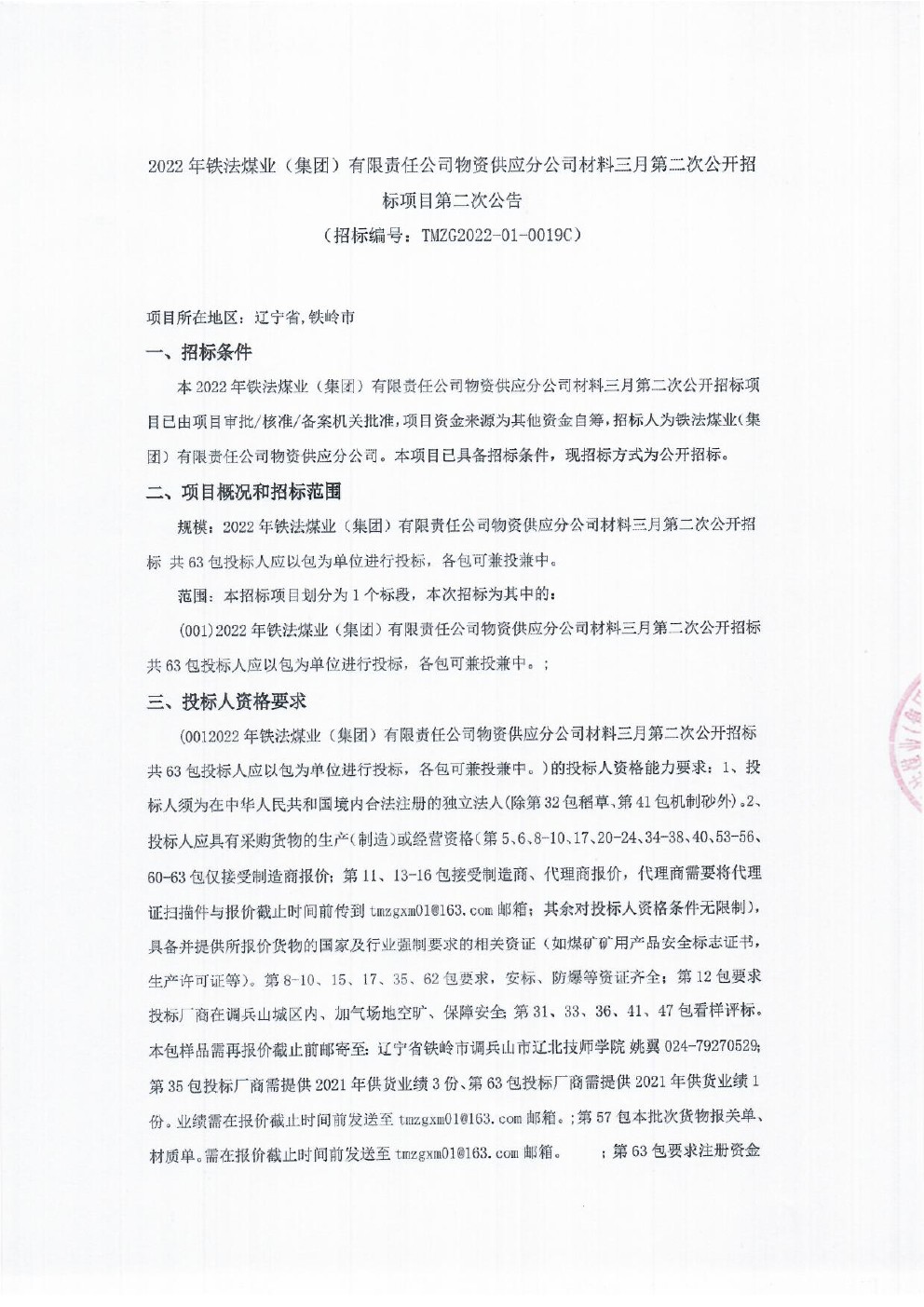 2022年3月28日材料公开招标第二次公告
