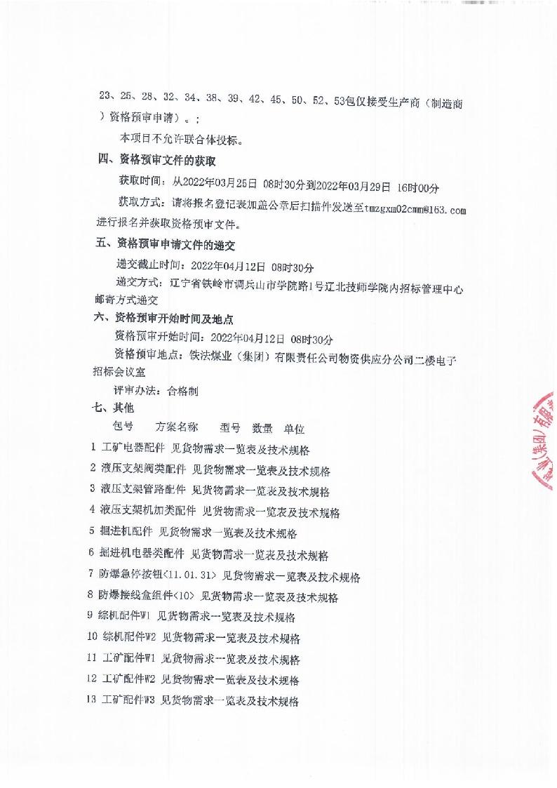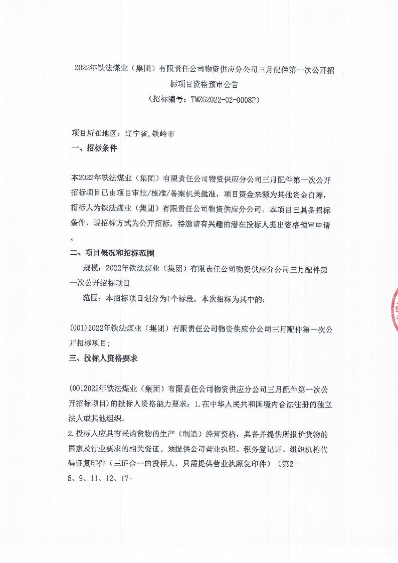 2022年4月12日配件三月第1次公开招标资格预审公告