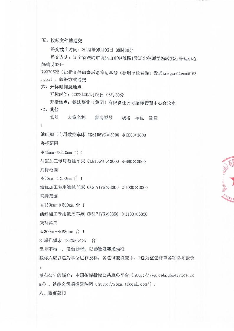 2022年5月6日辽宁通用重型机械股份有限公司设备公开招标第一批二次公告
