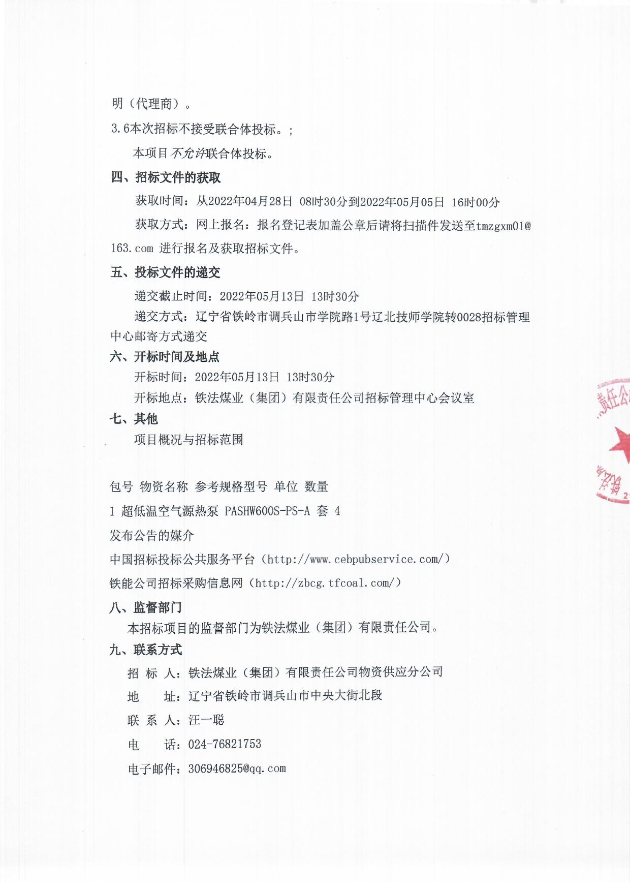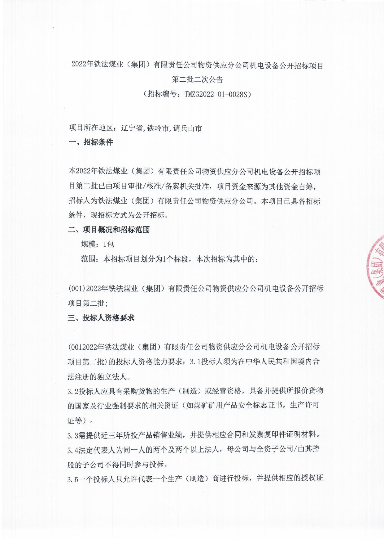 2022年5月13日机电设备公开招标二次公告