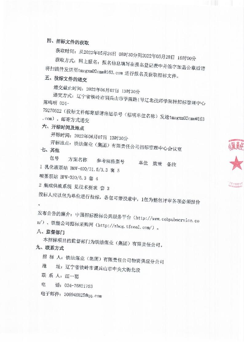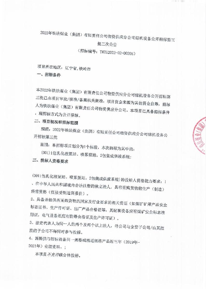 2022年6月7日综机设备公开招标二次公告