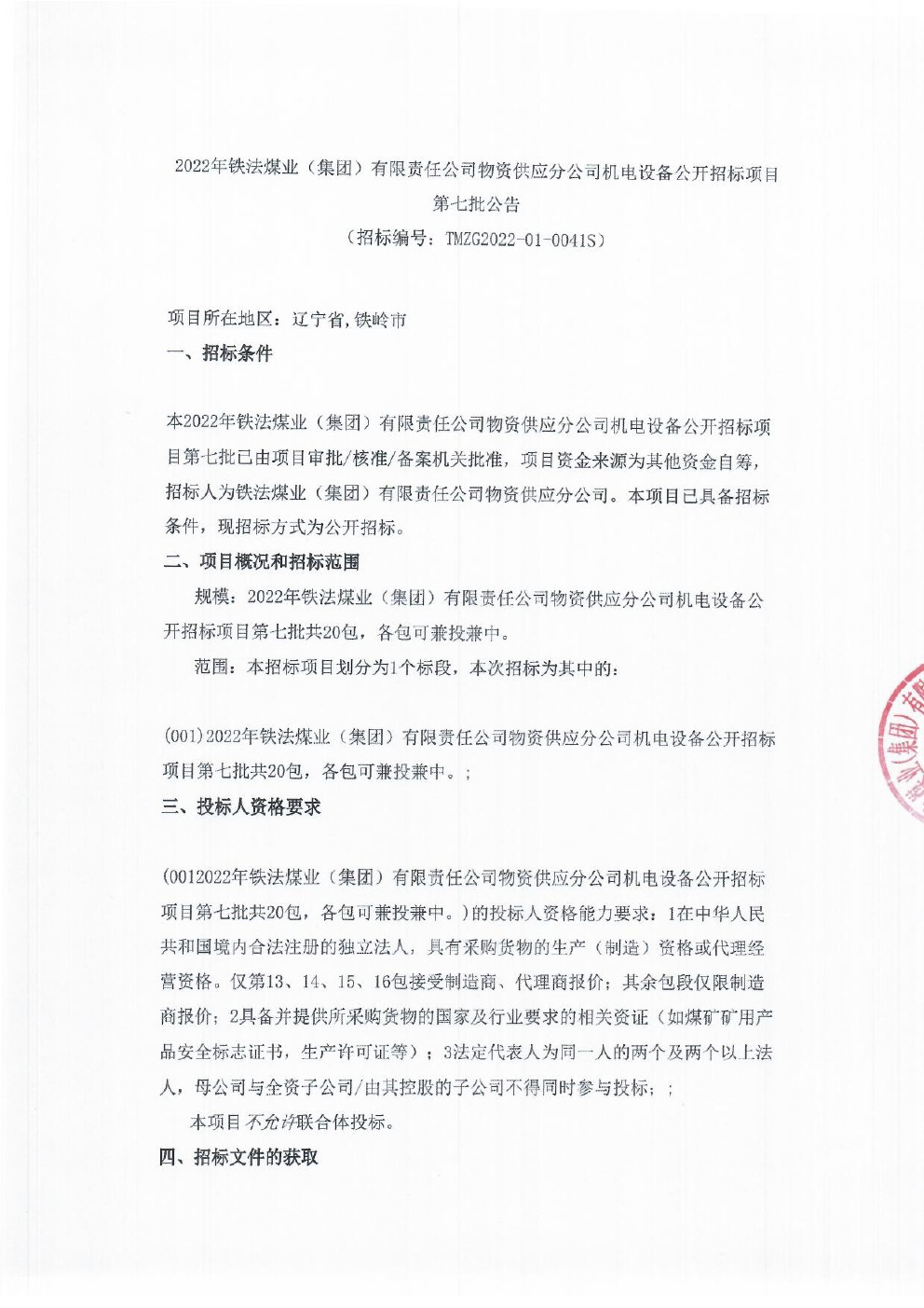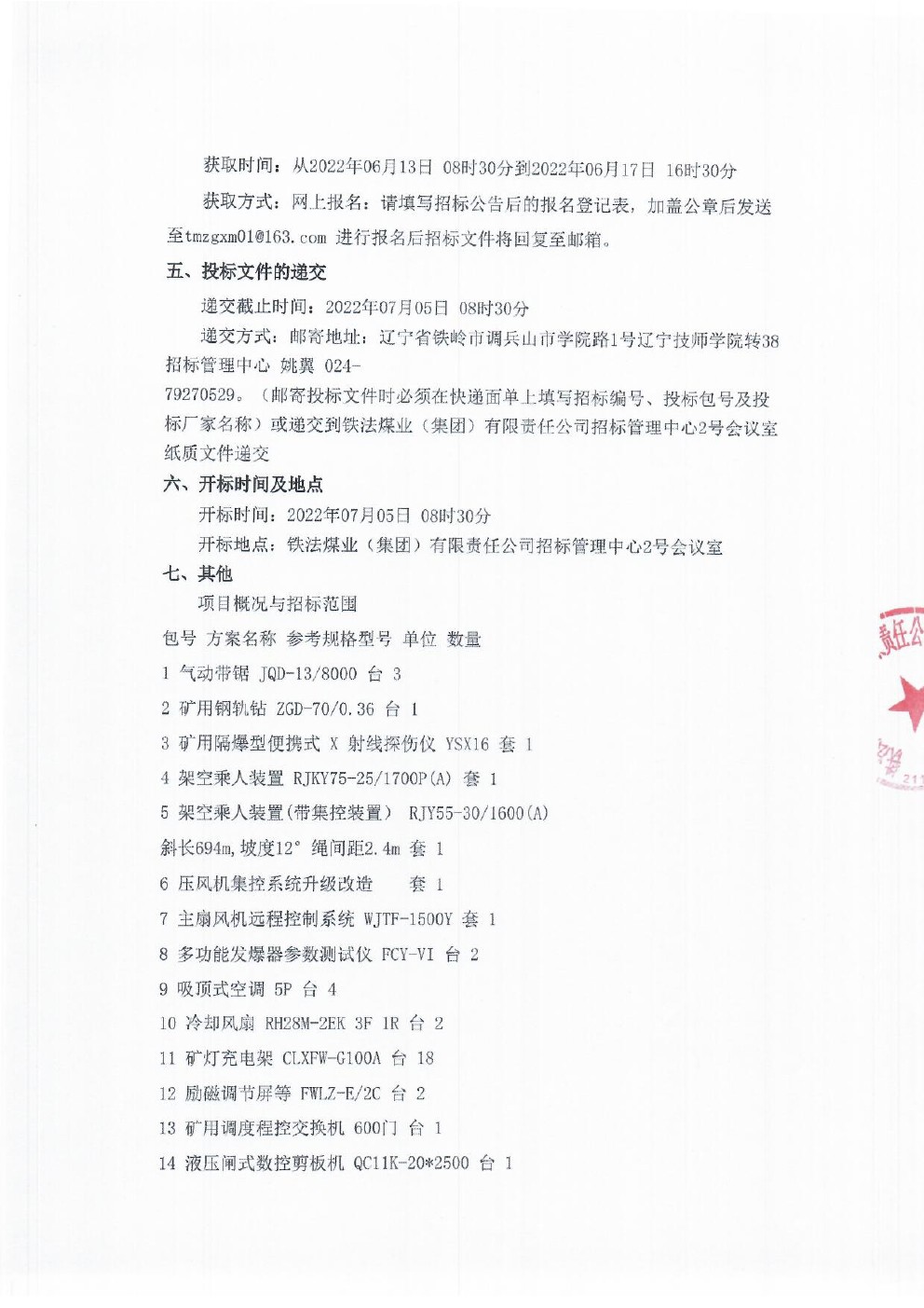 2022年7月5日机电设备公开招标公告