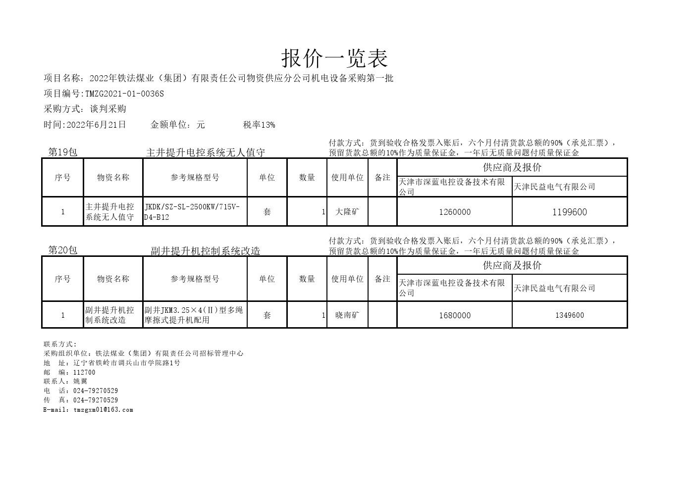 2022年6月21日设备价格公示