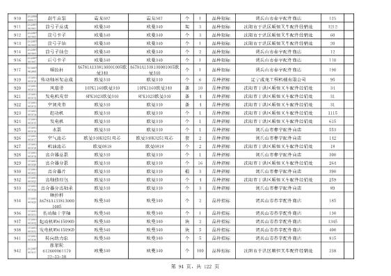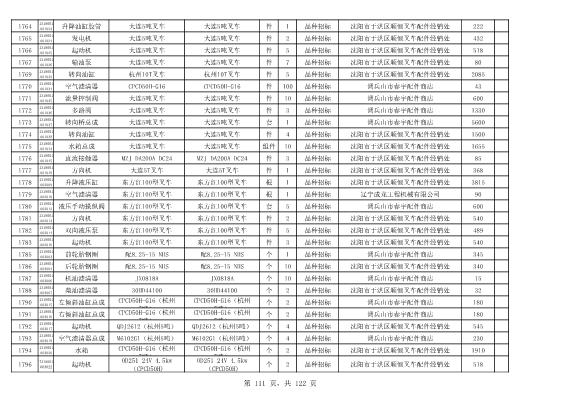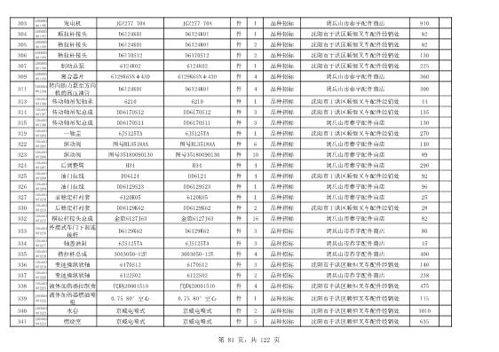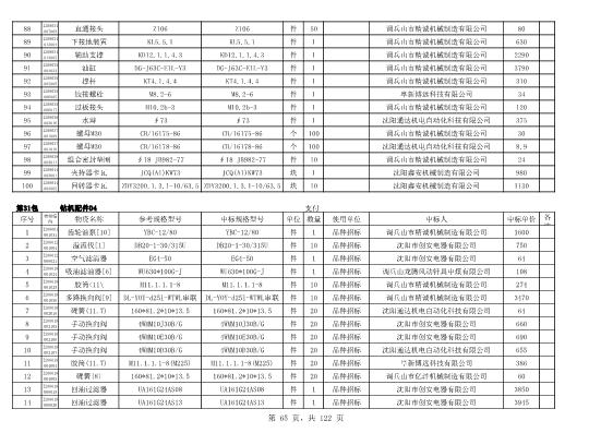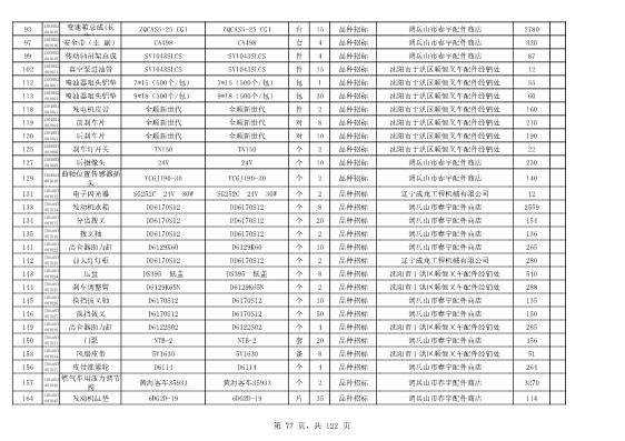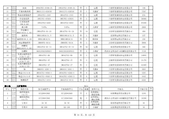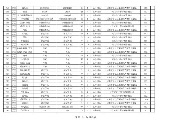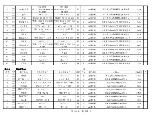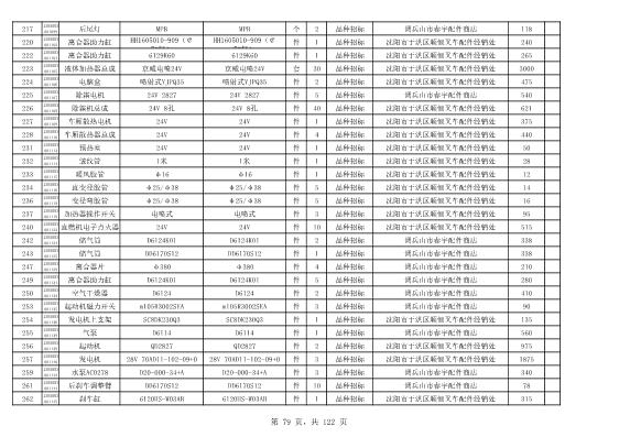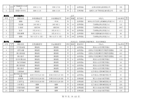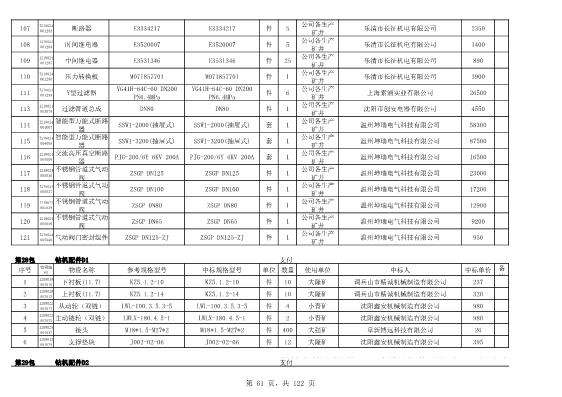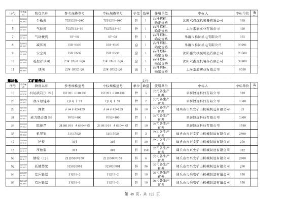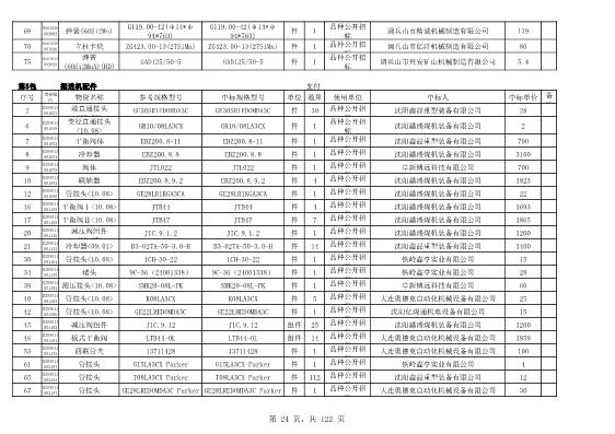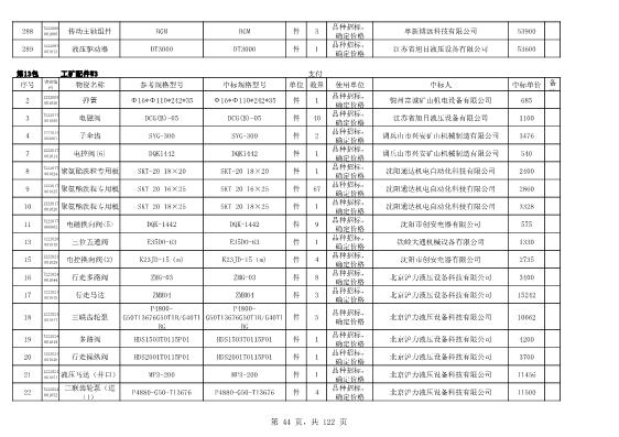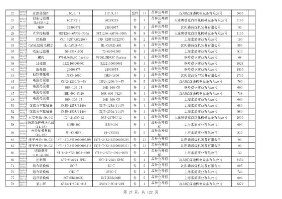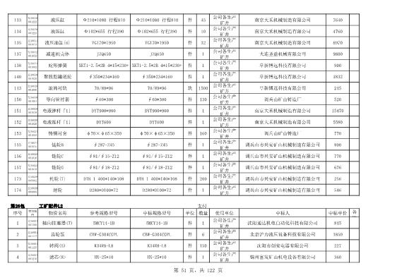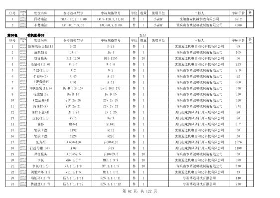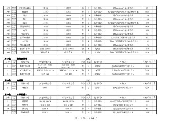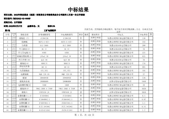 2022年5月27日配件公开招标项目中标结果公告