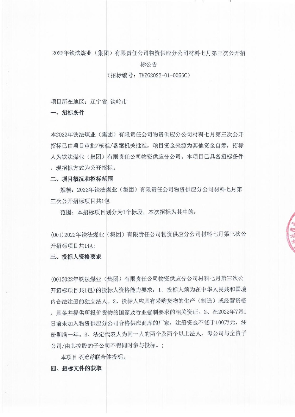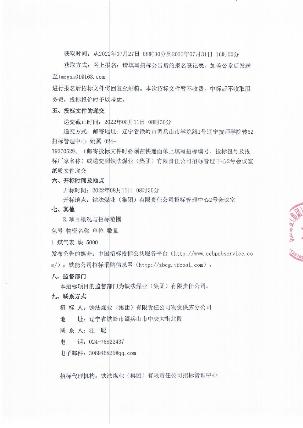 2022年8月11日材料公开招标公告