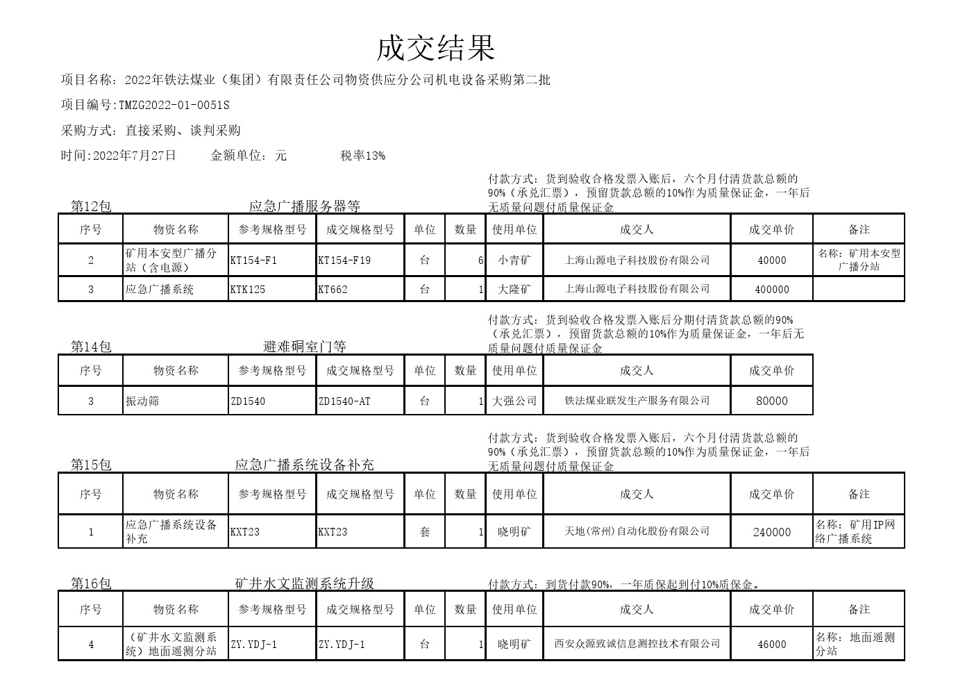 2022年7月27日设备成交结果名称及规格型号变更公告
