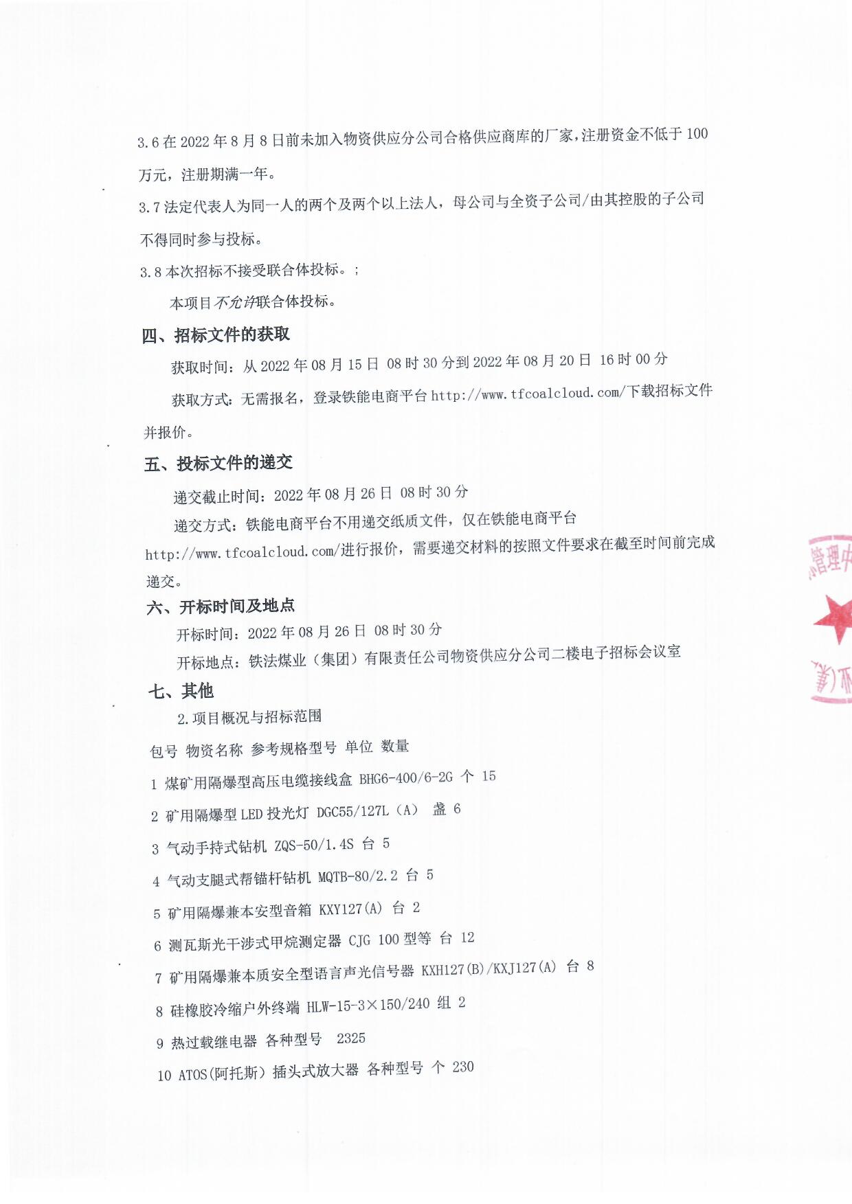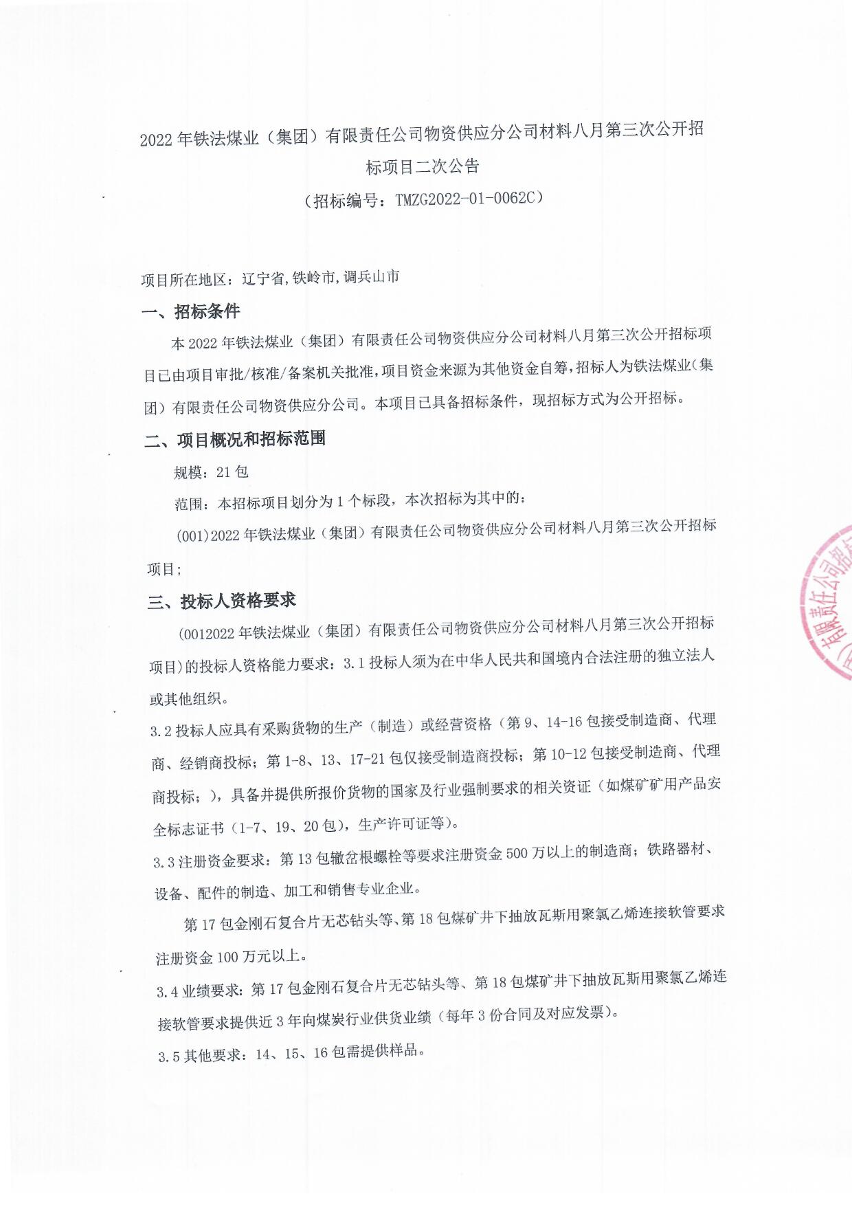 2022年8月26日材料公开招标二次公告