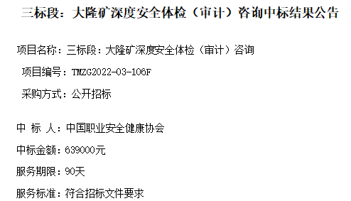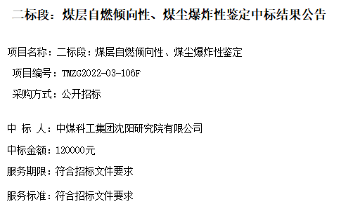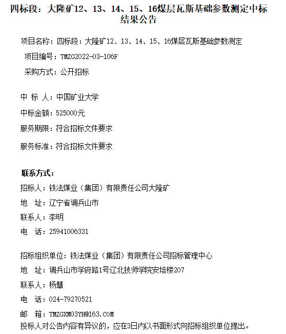 铁法煤业(集团)有限责任公司大隆矿技术服务类项目公开招标中标结果公告