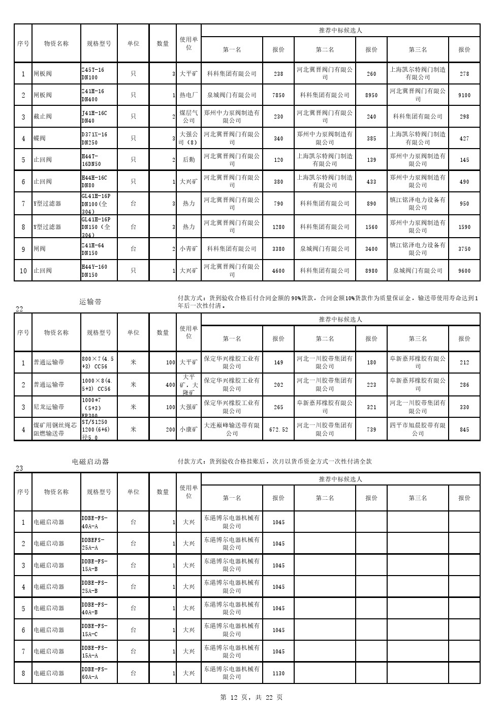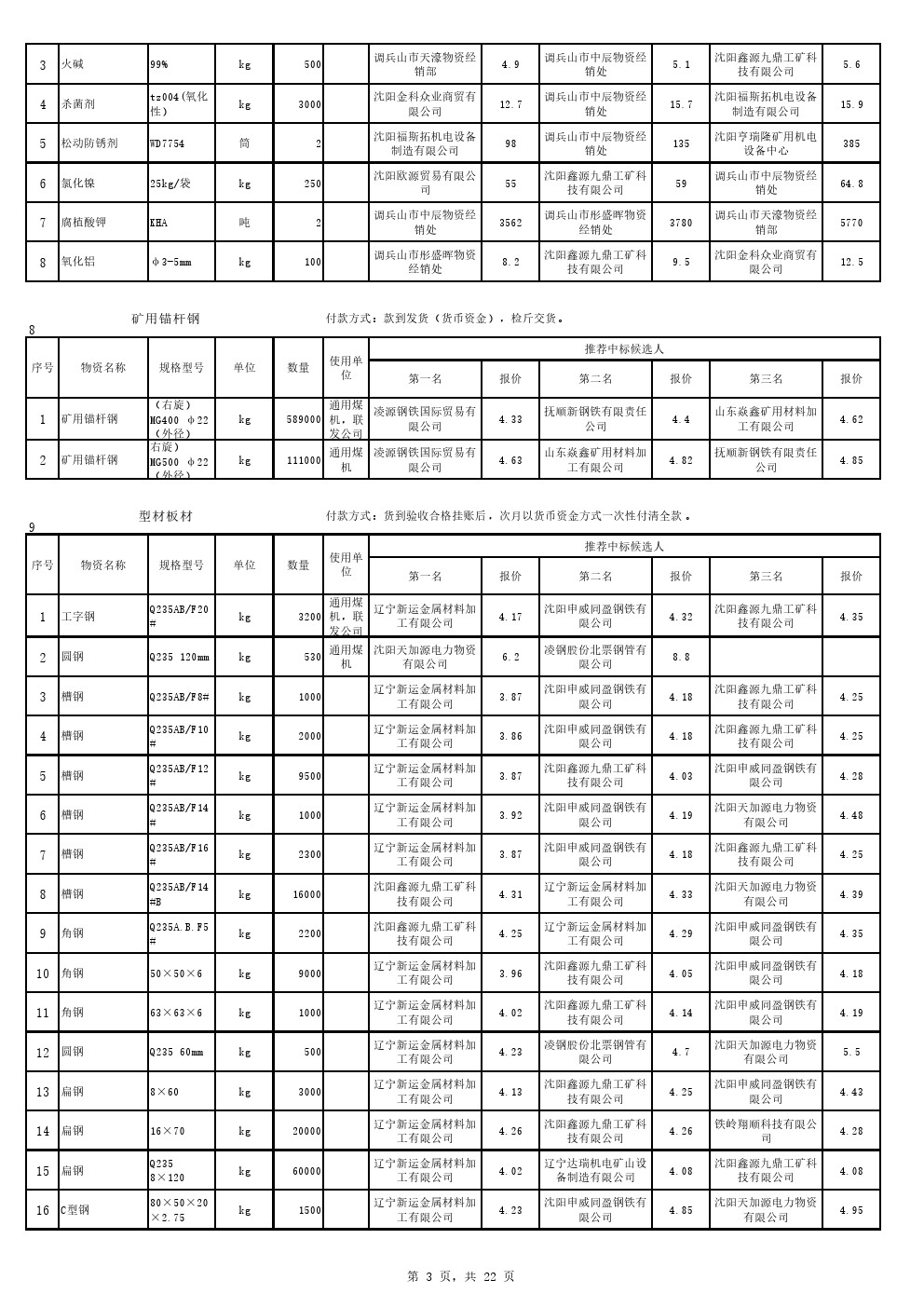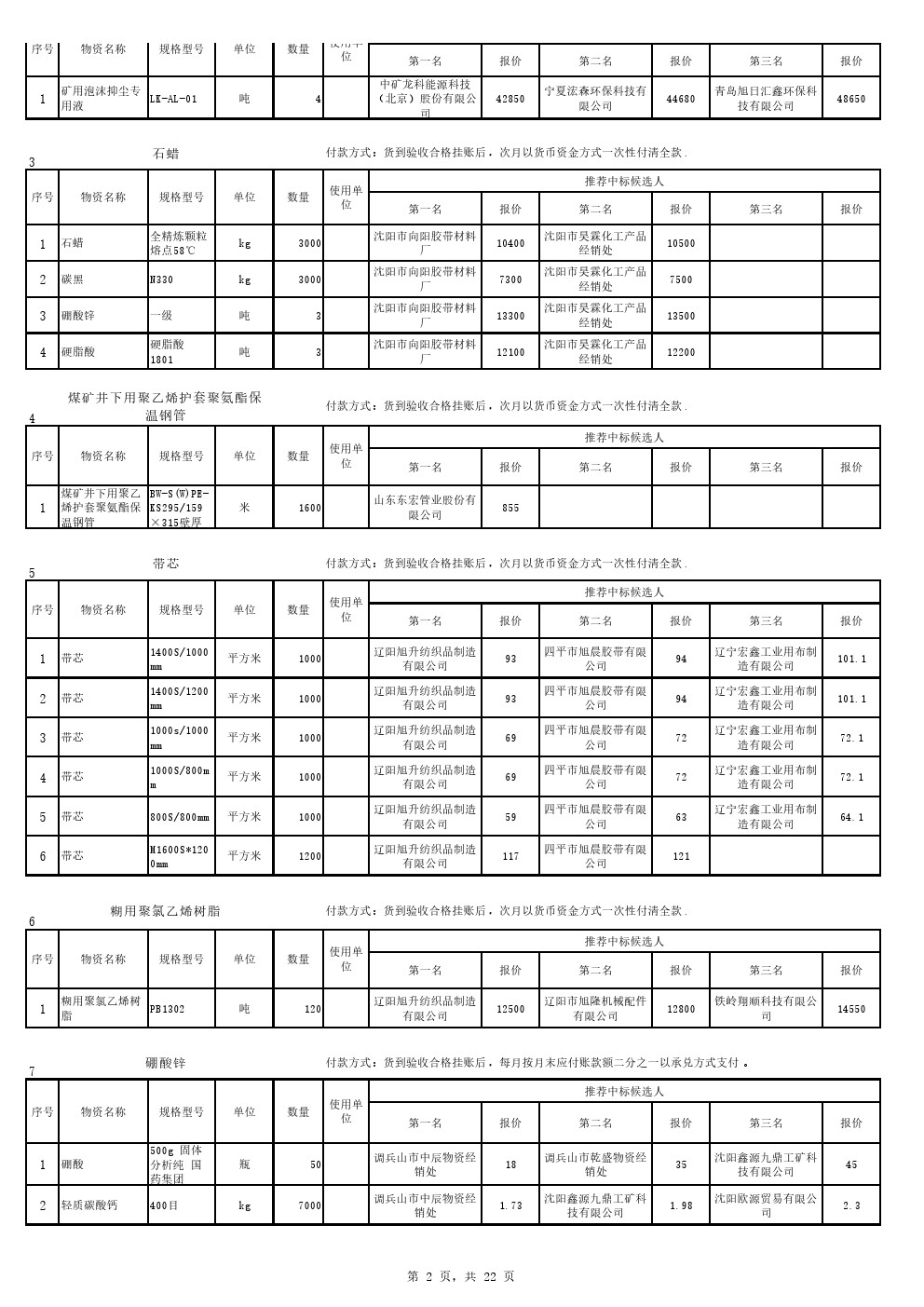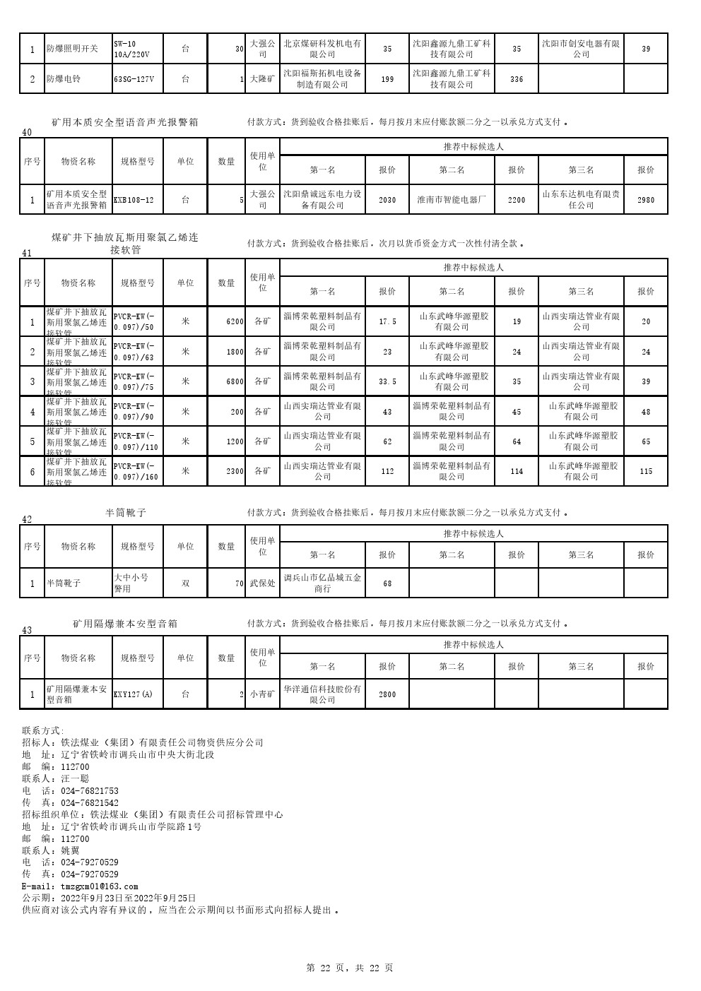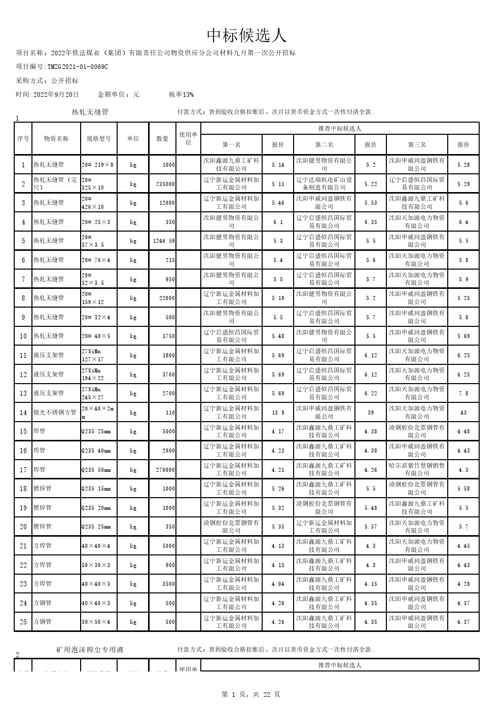 2022年9月20日材料中标候选人公示