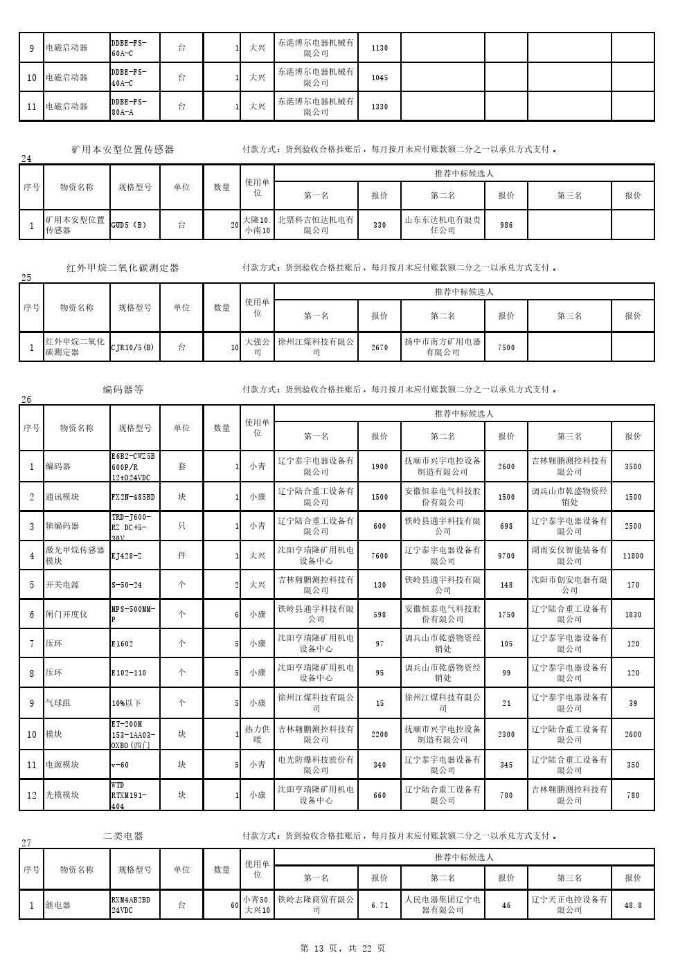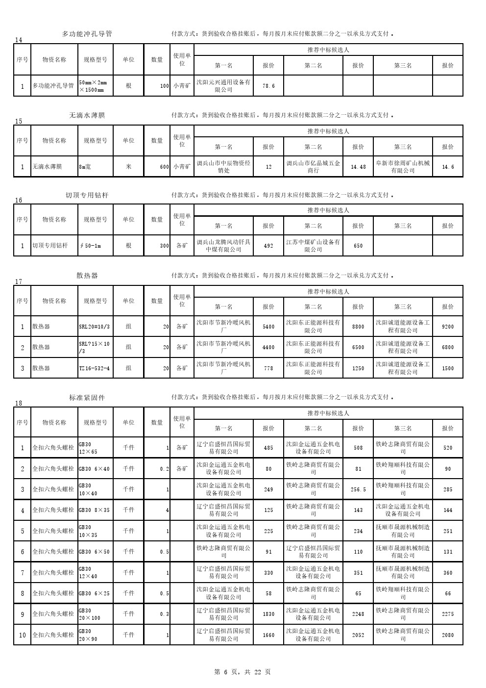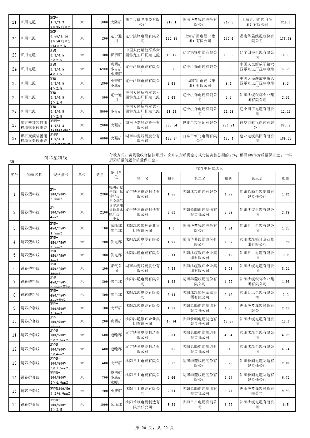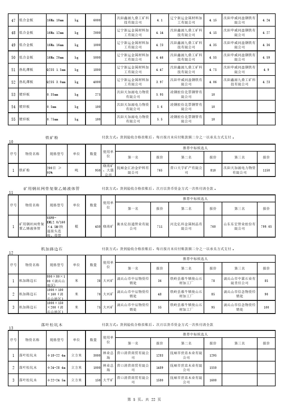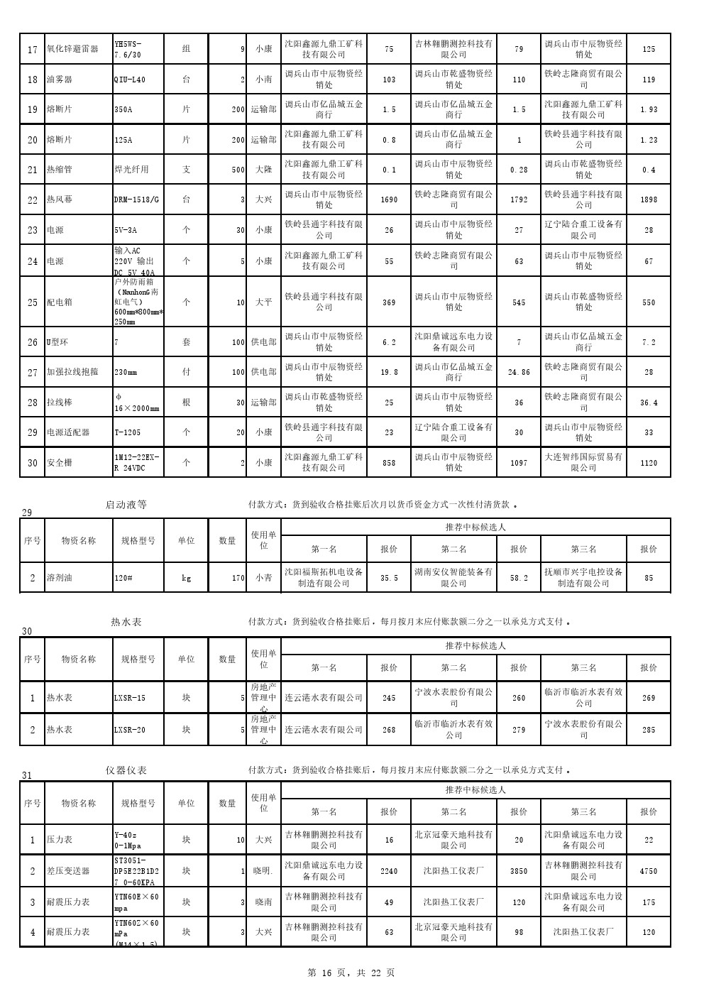 2022年9月20日材料中标候选人公示