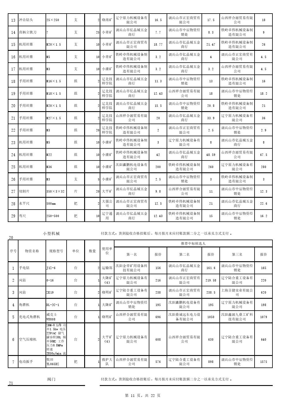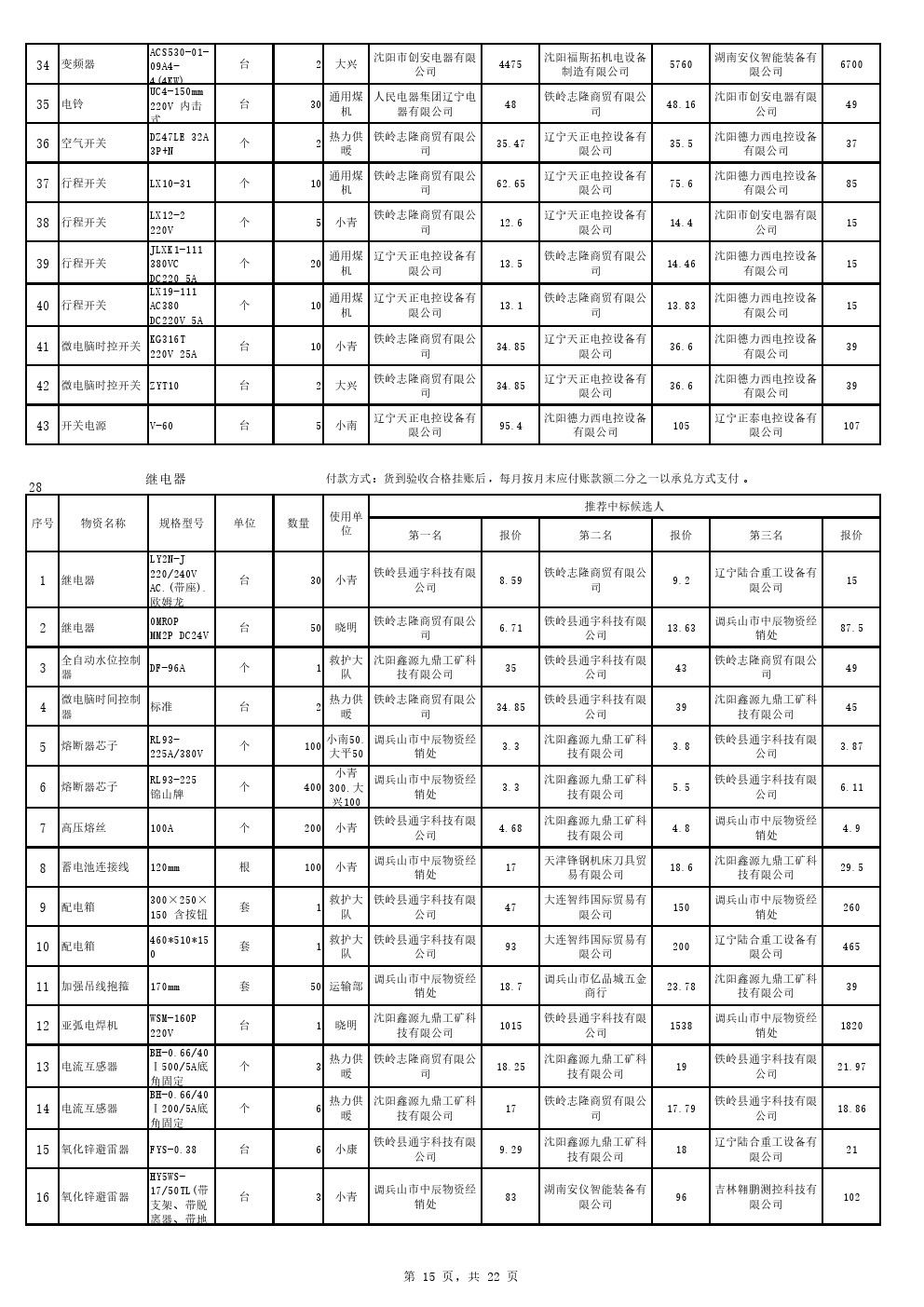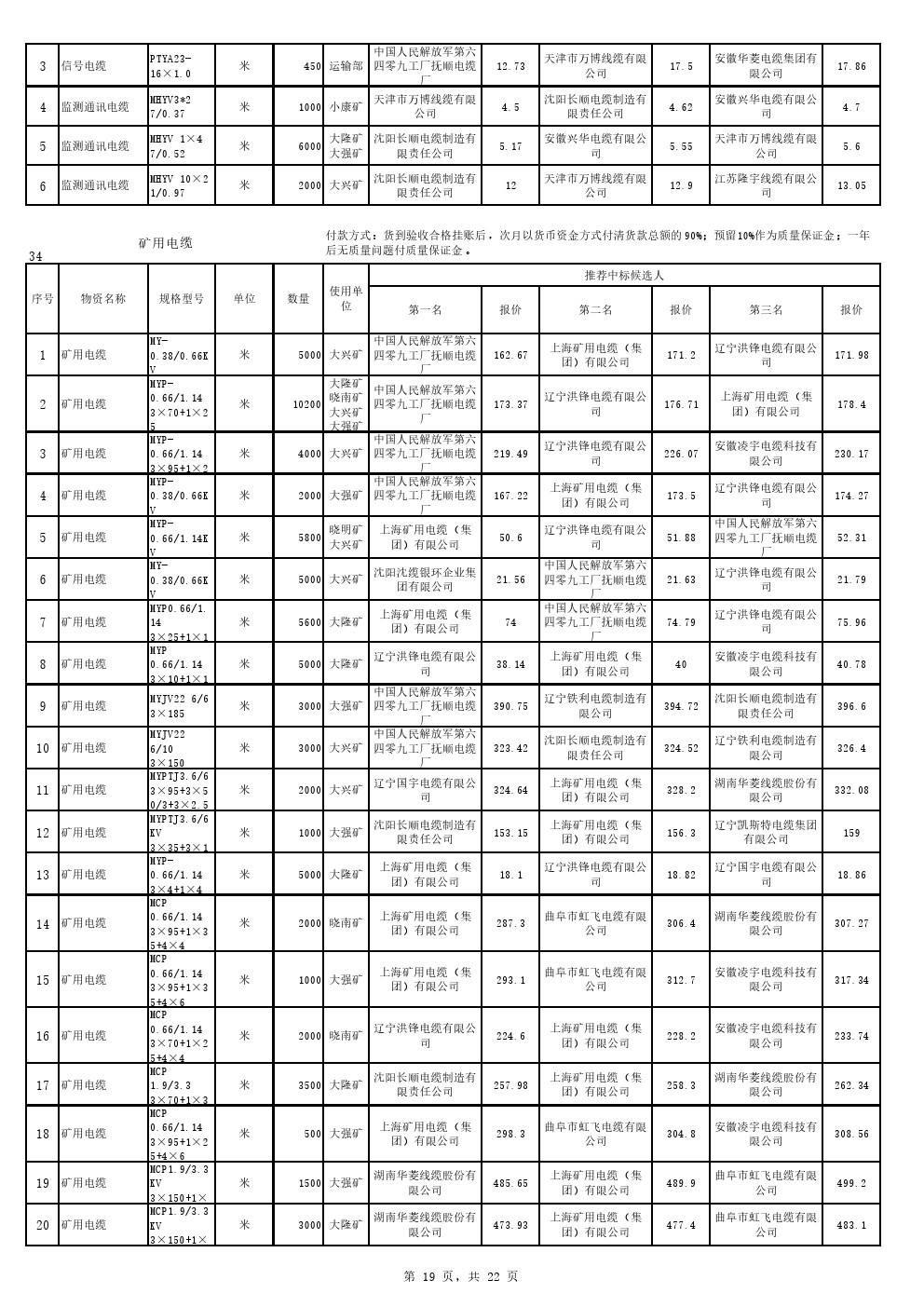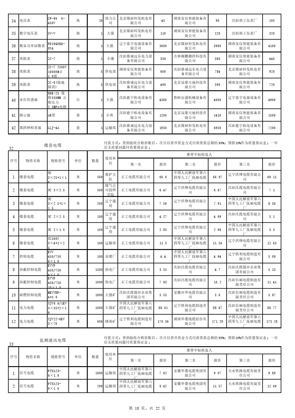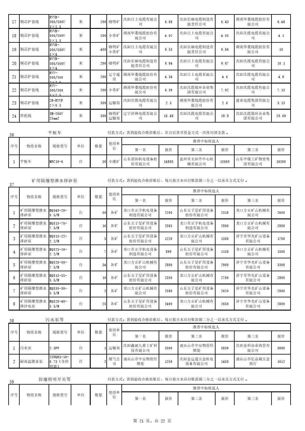 2022年9月20日材料中标候选人公示