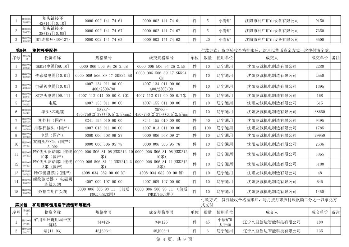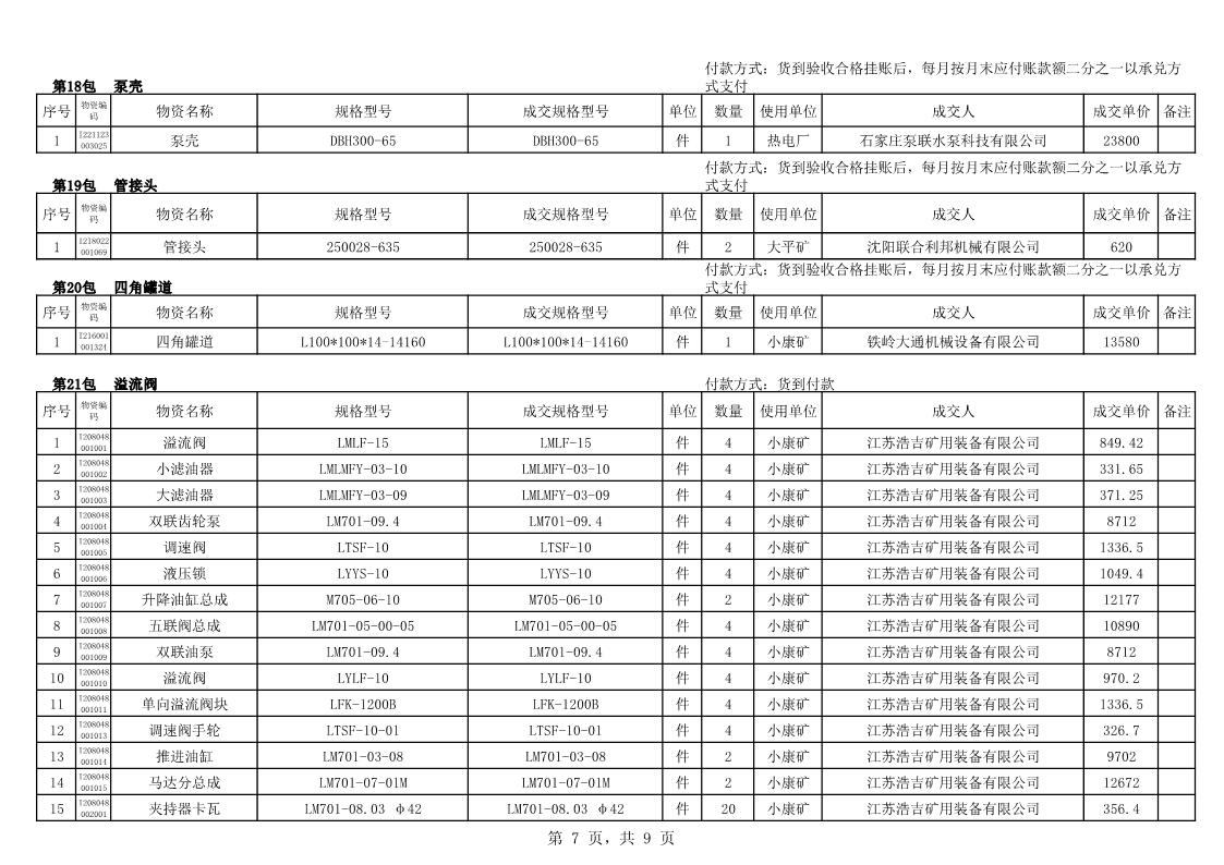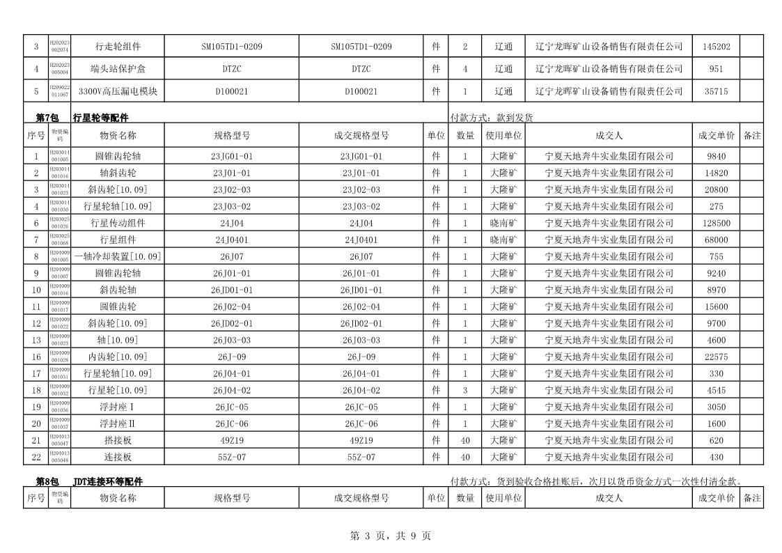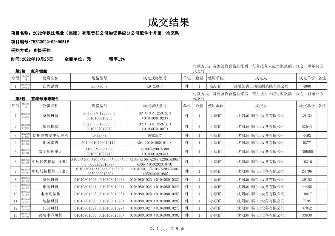 2022年10月25日配件成交结果公告