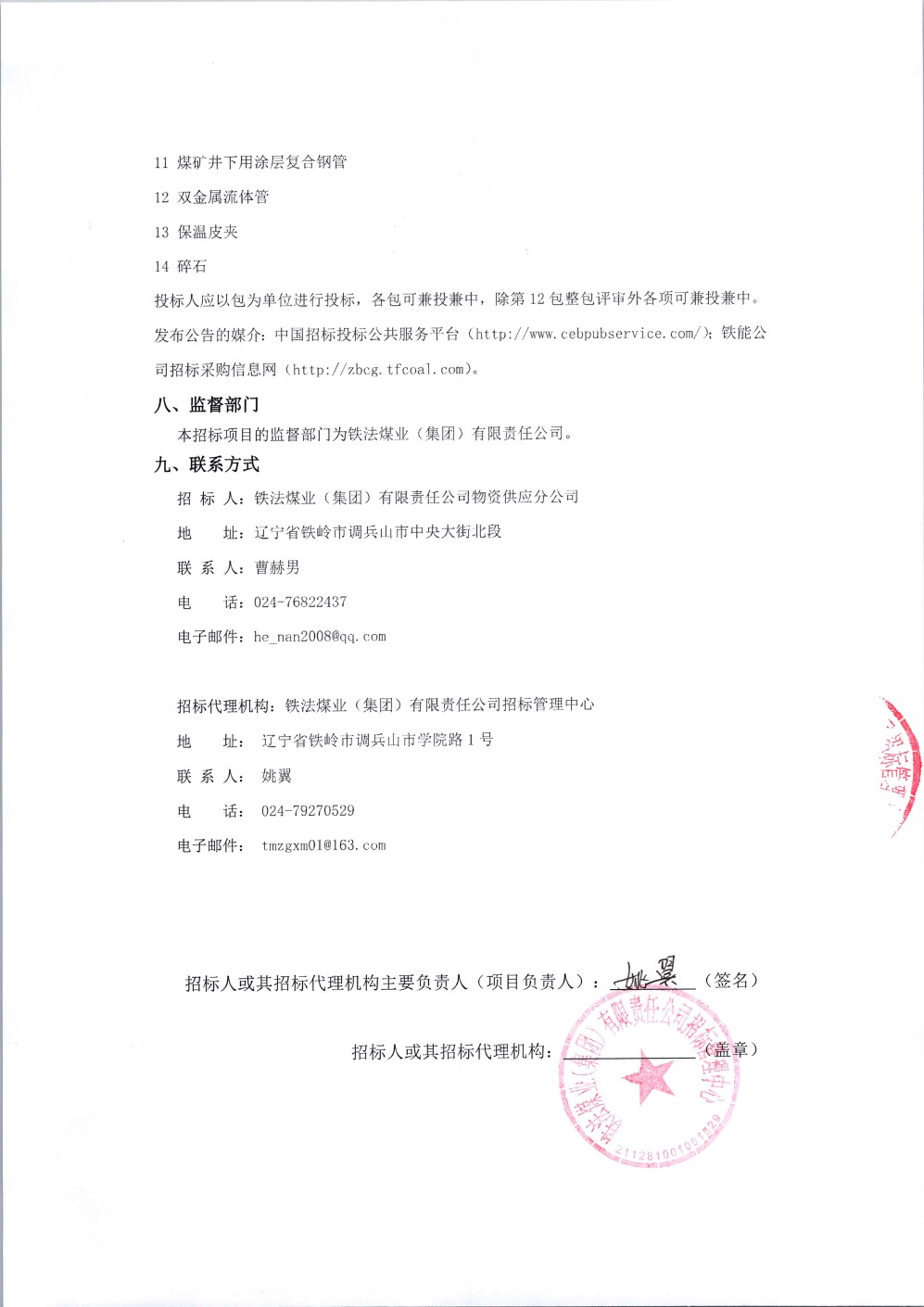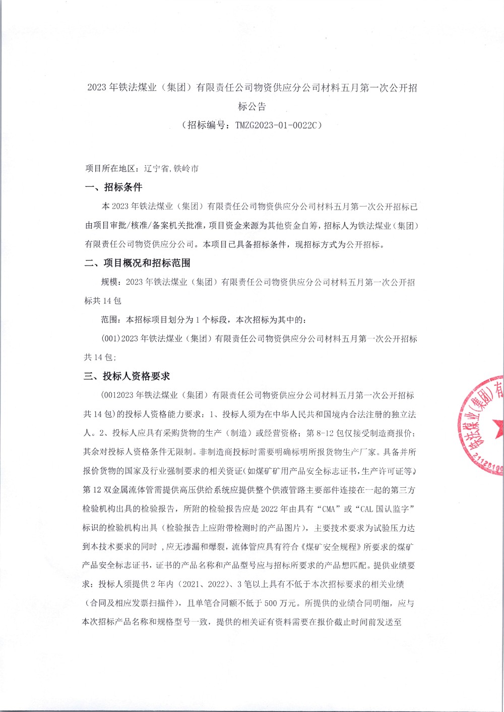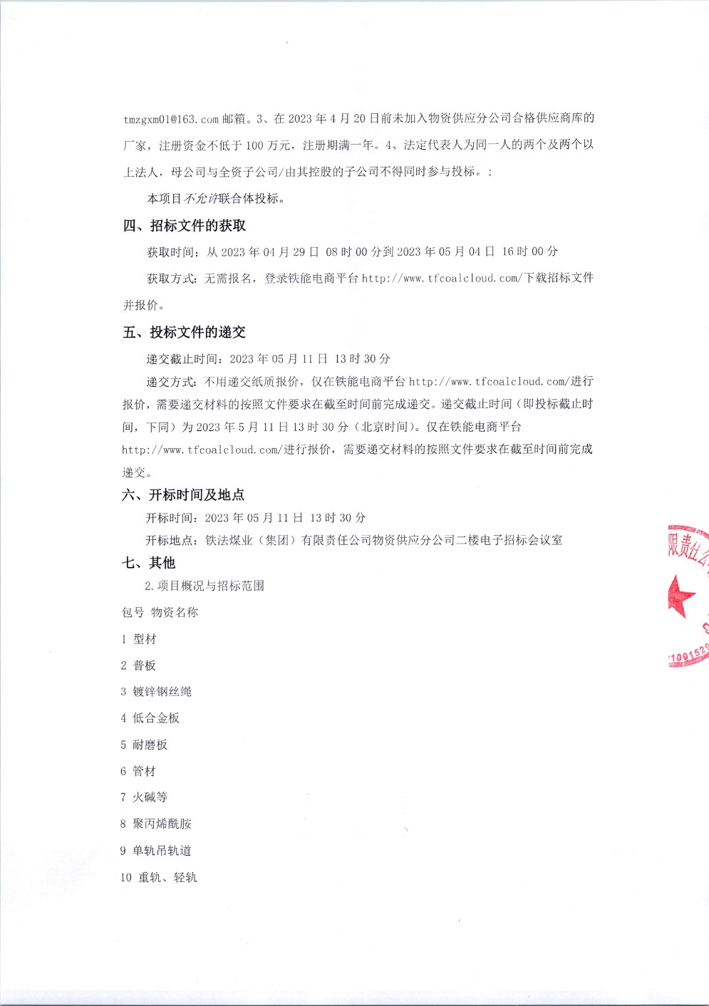2023年5月11日材料公开招标公告
