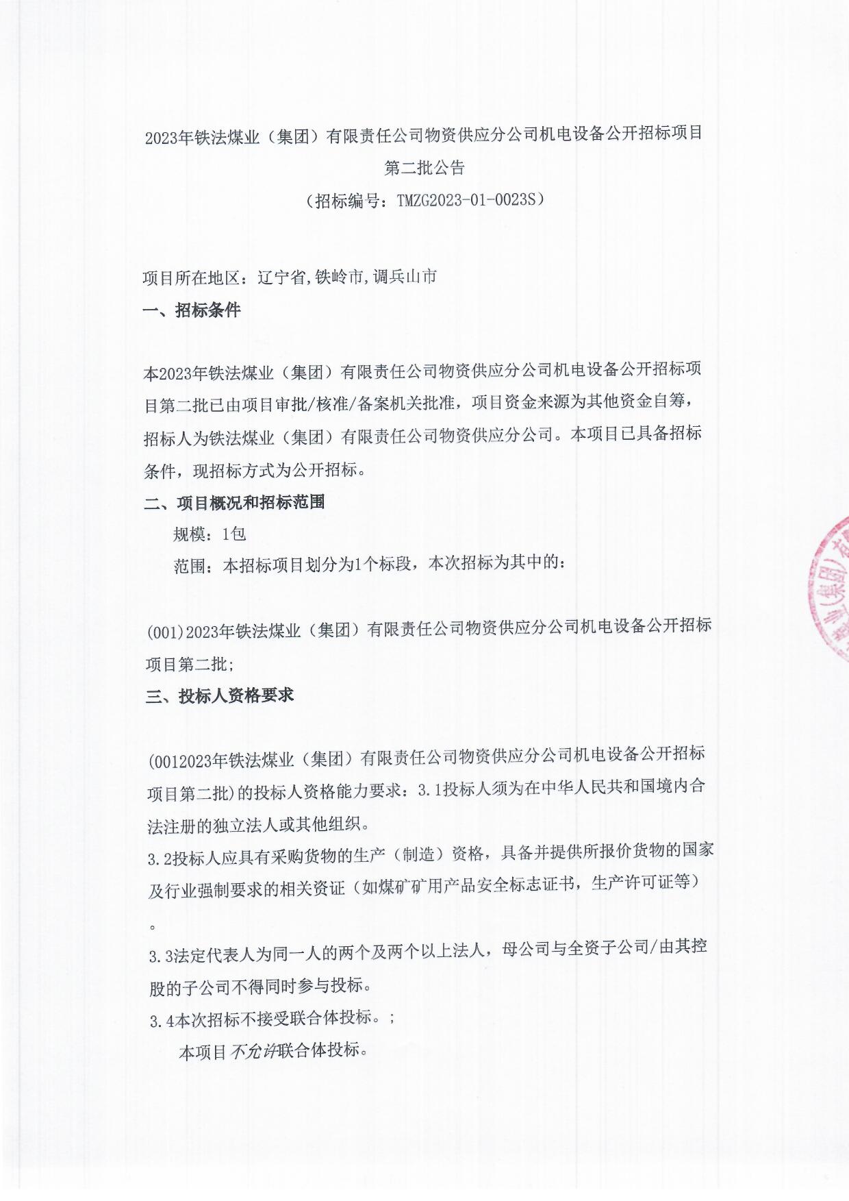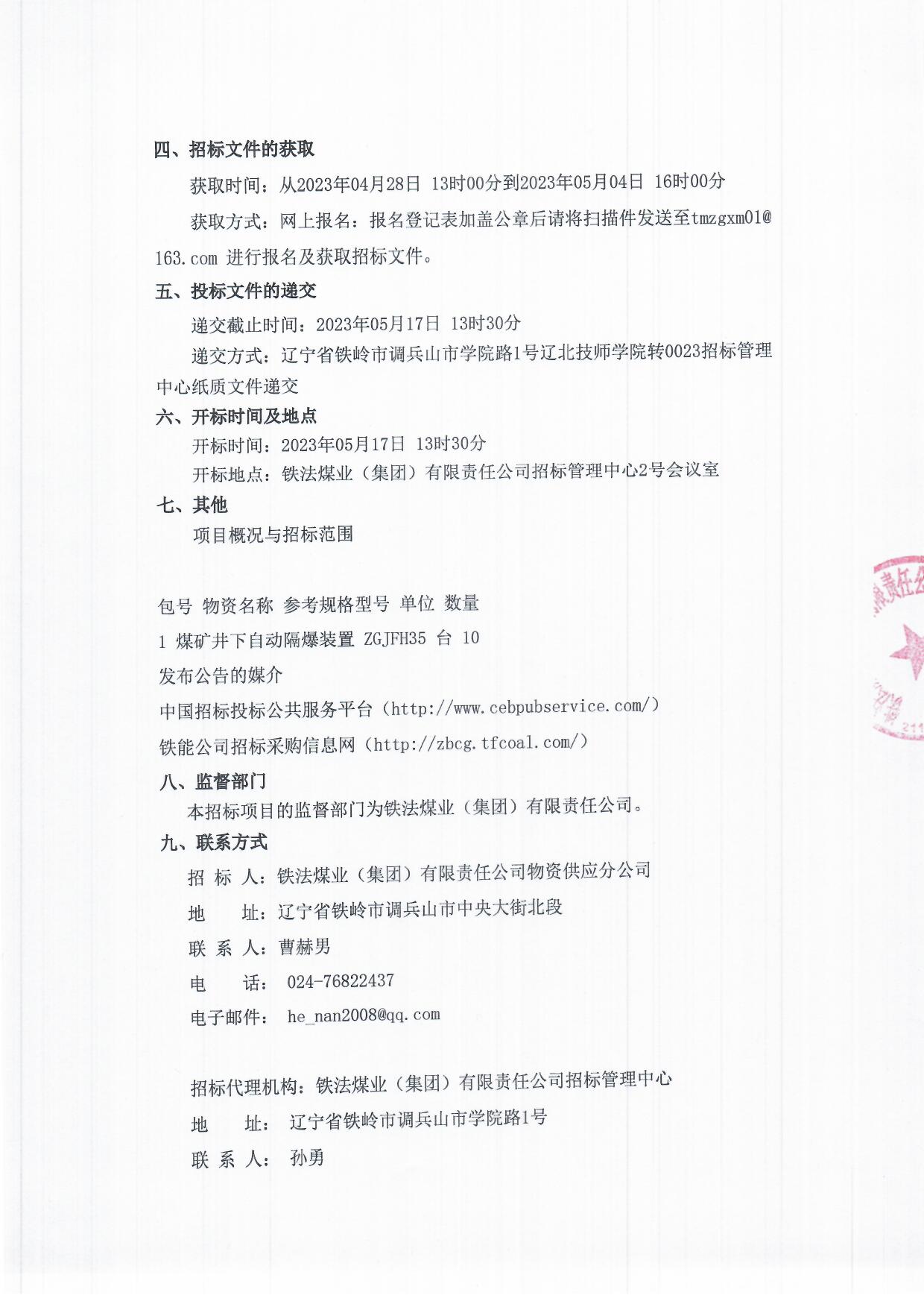 2023年5月17日机电设备公开招标公告