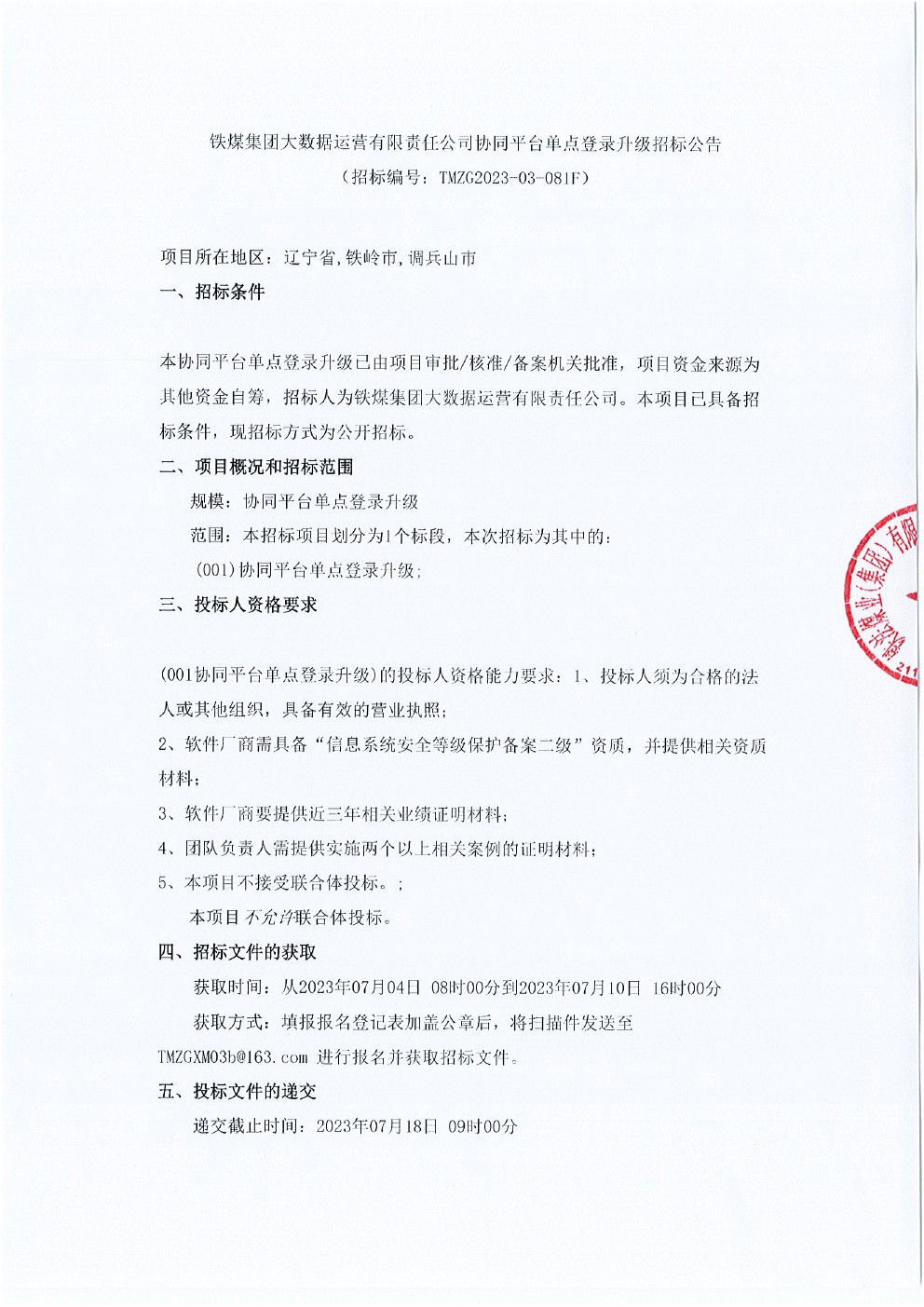 铁煤集团大数据运营有限责任公司协同平台单点登录升级招标公告