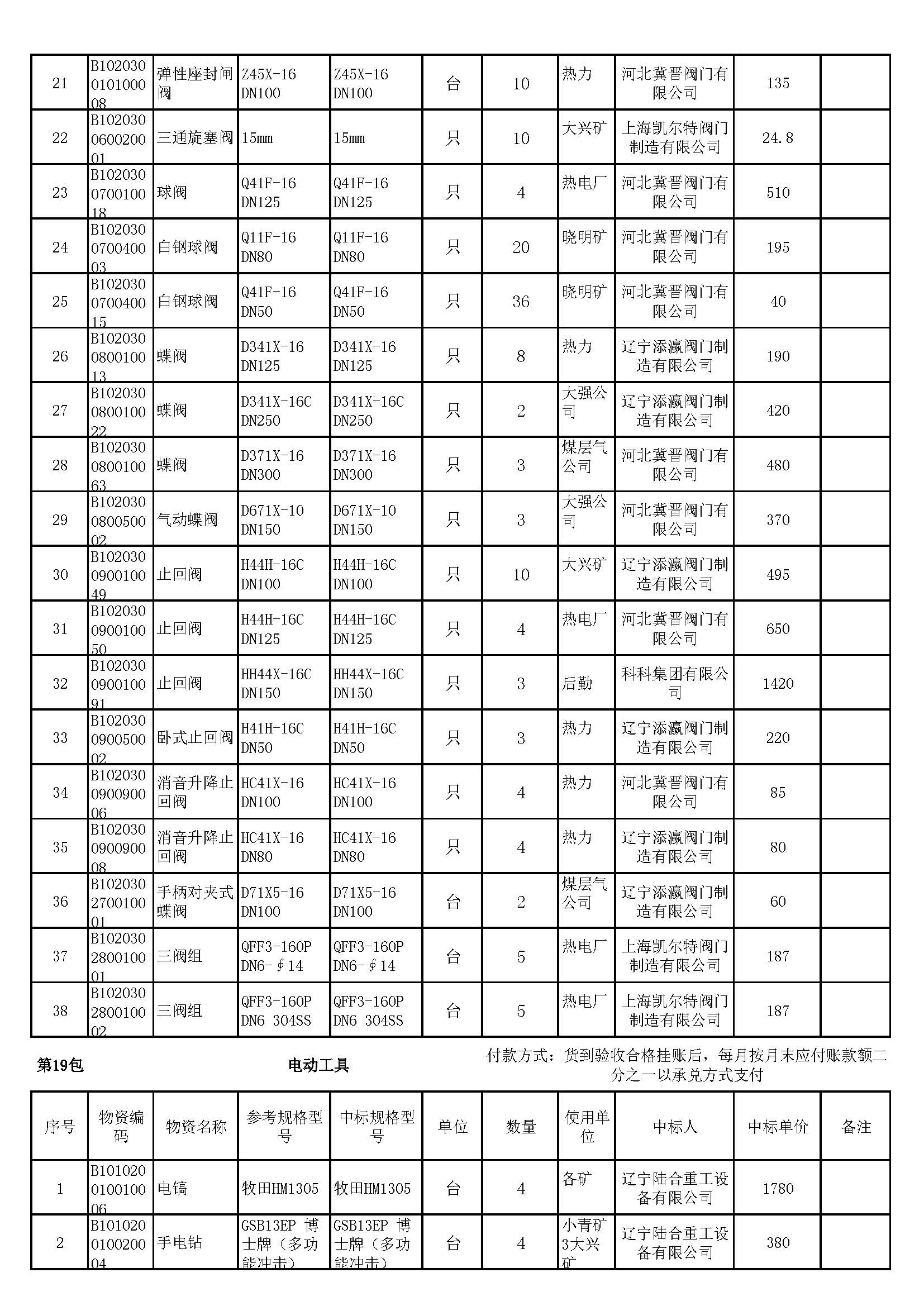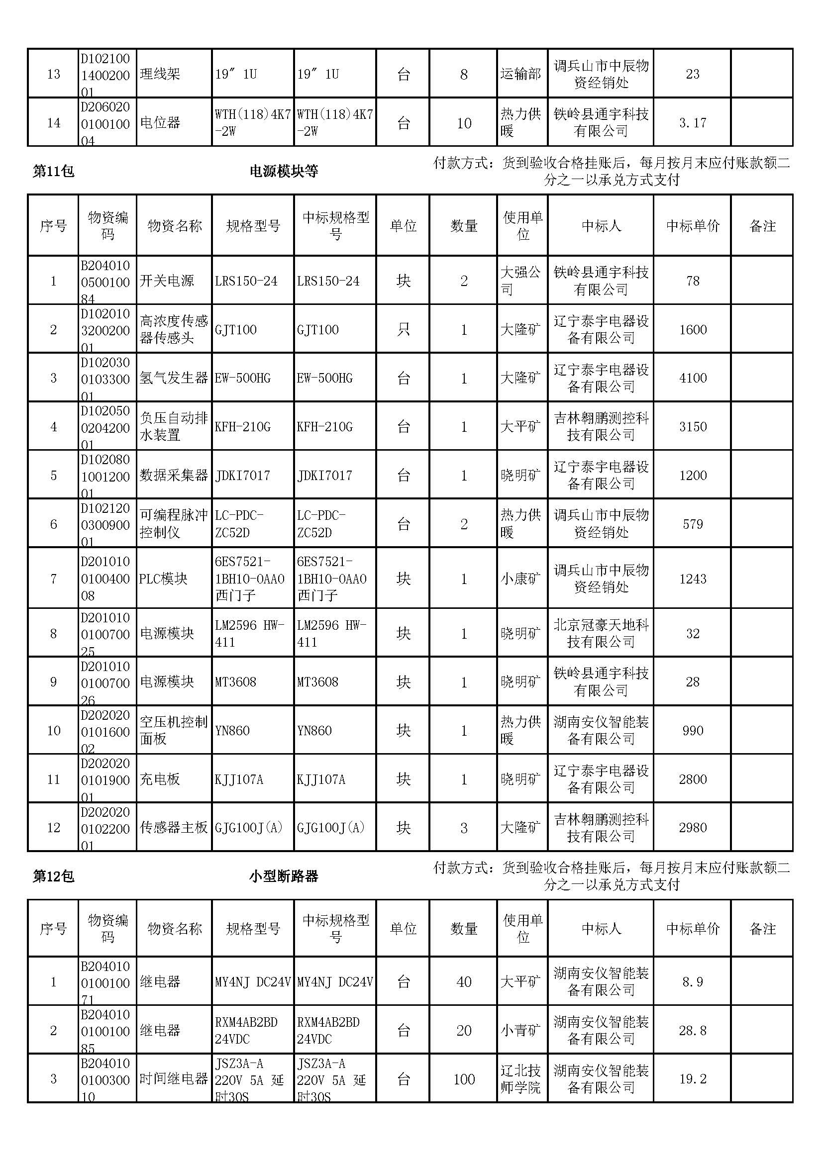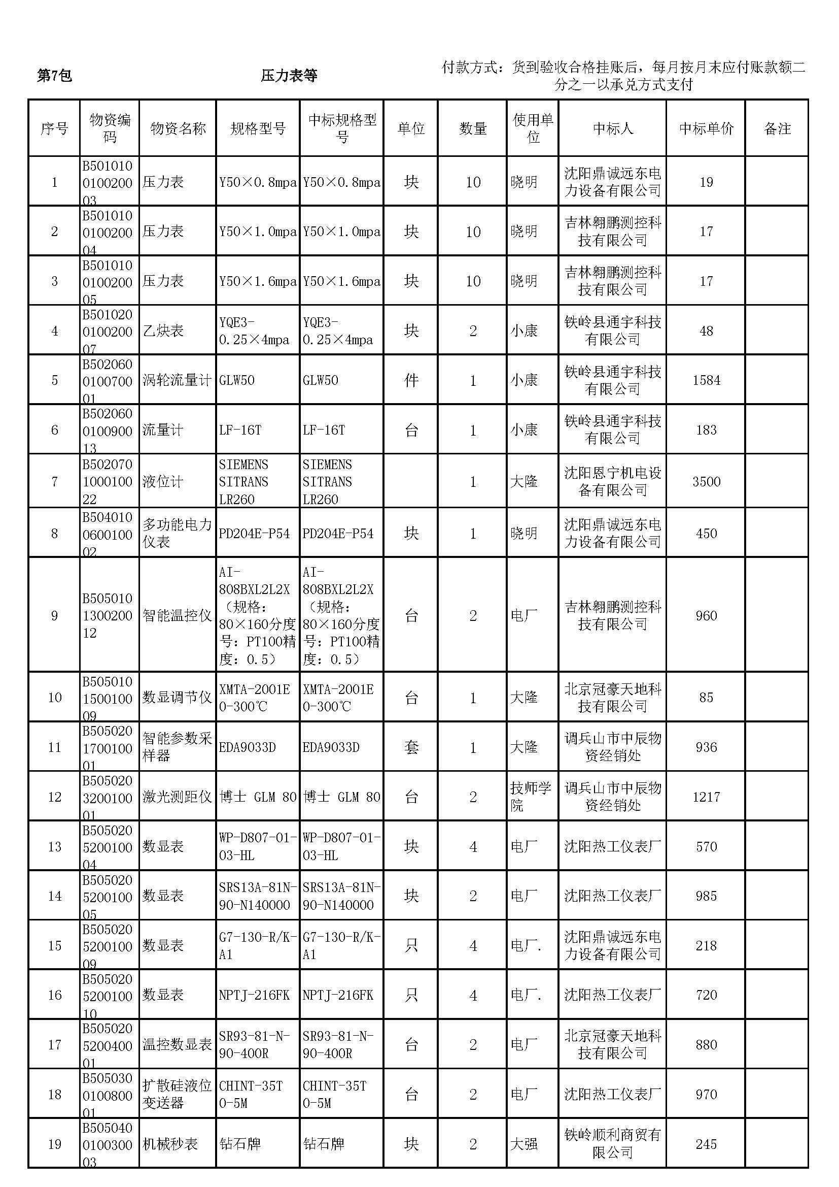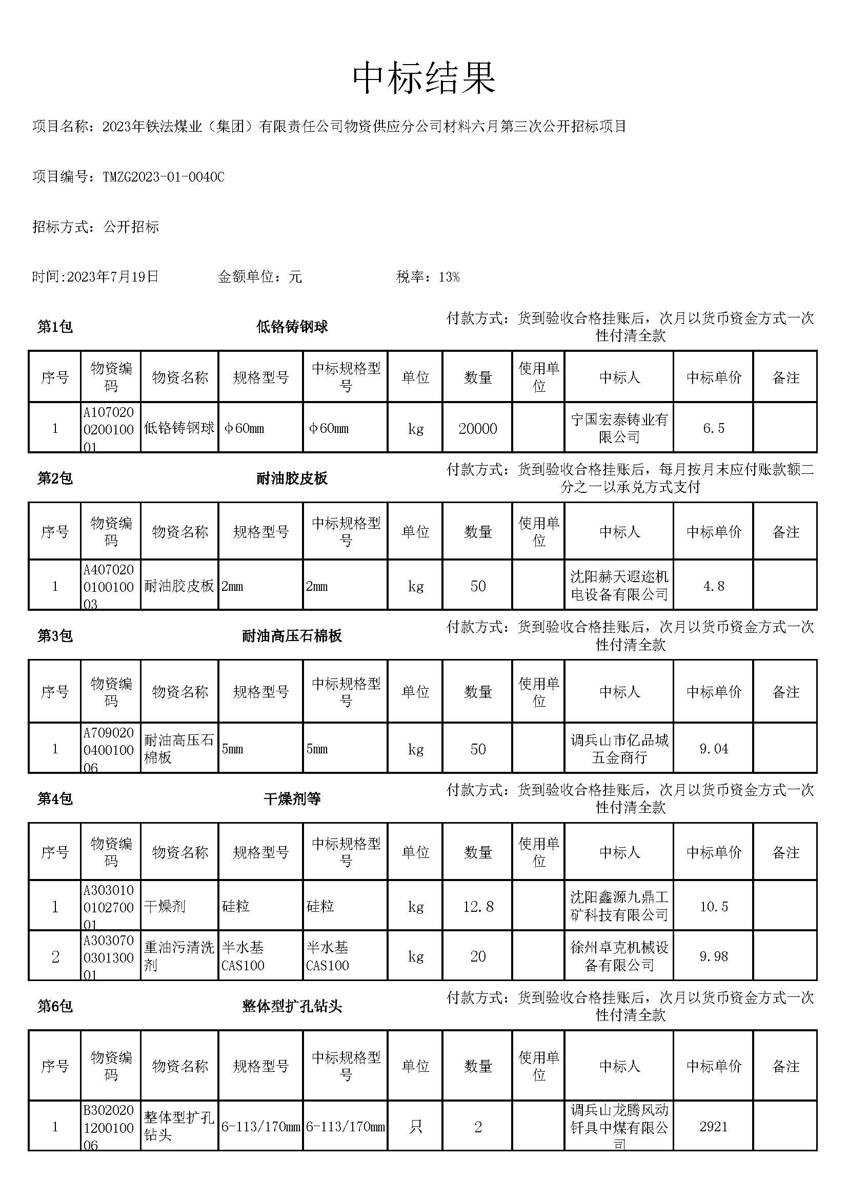 2023年7月19日材料中标结果公告