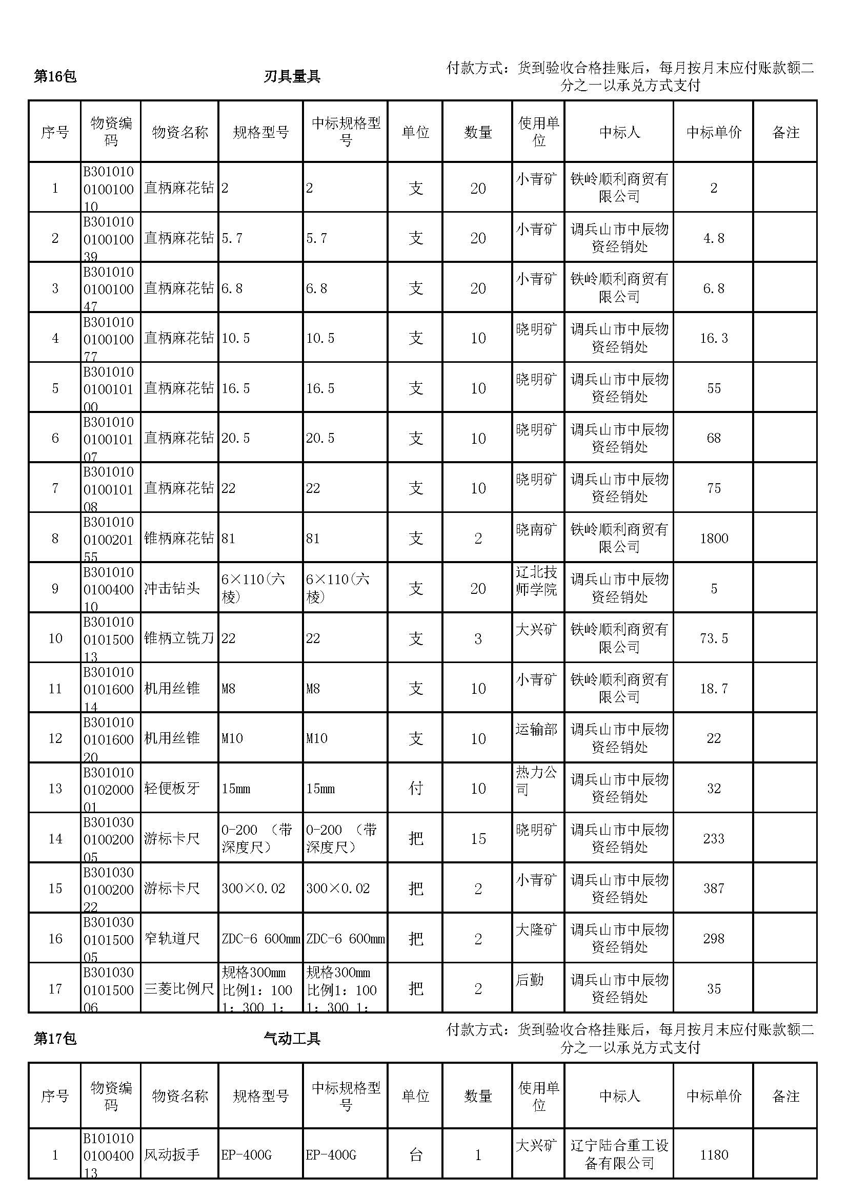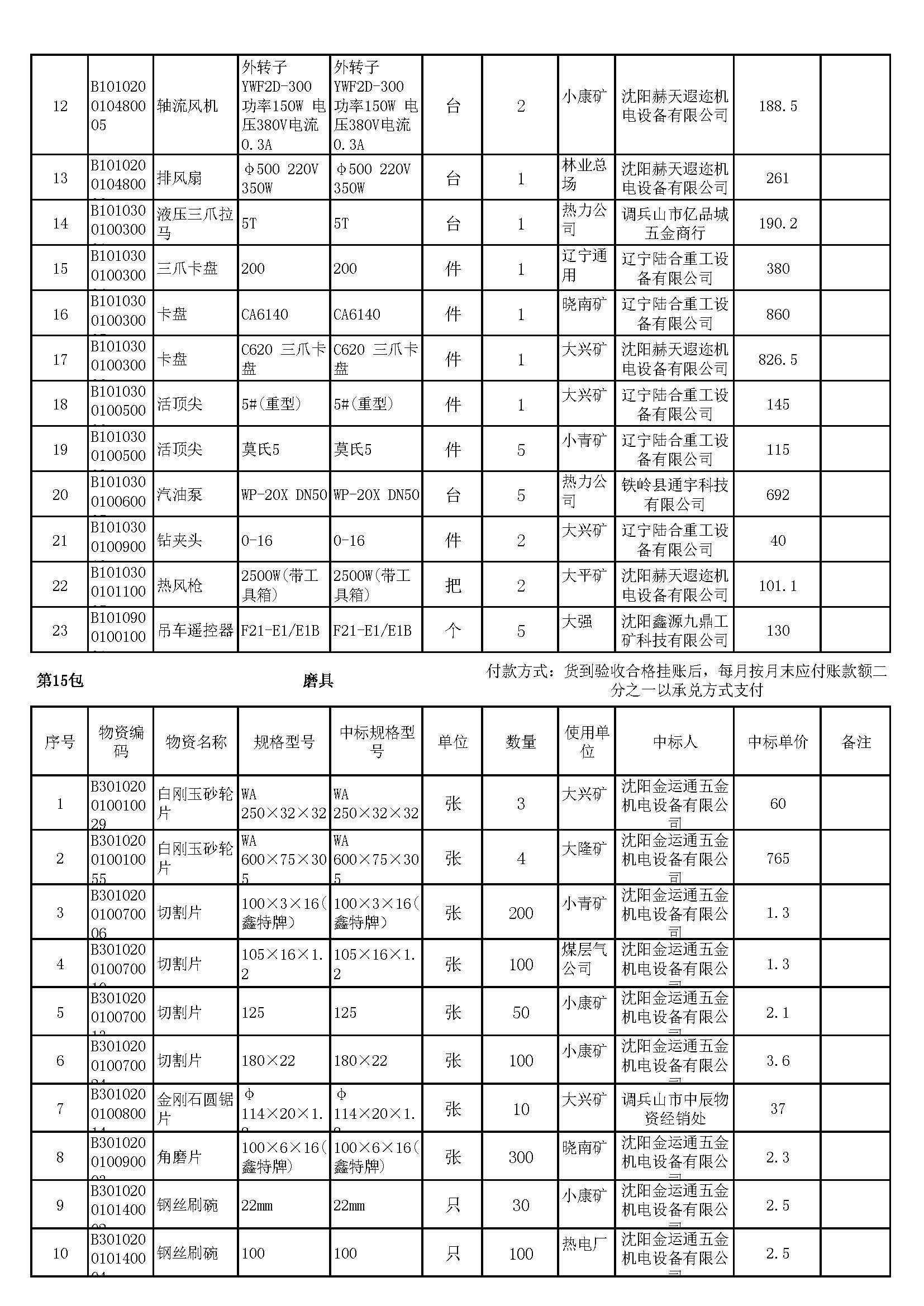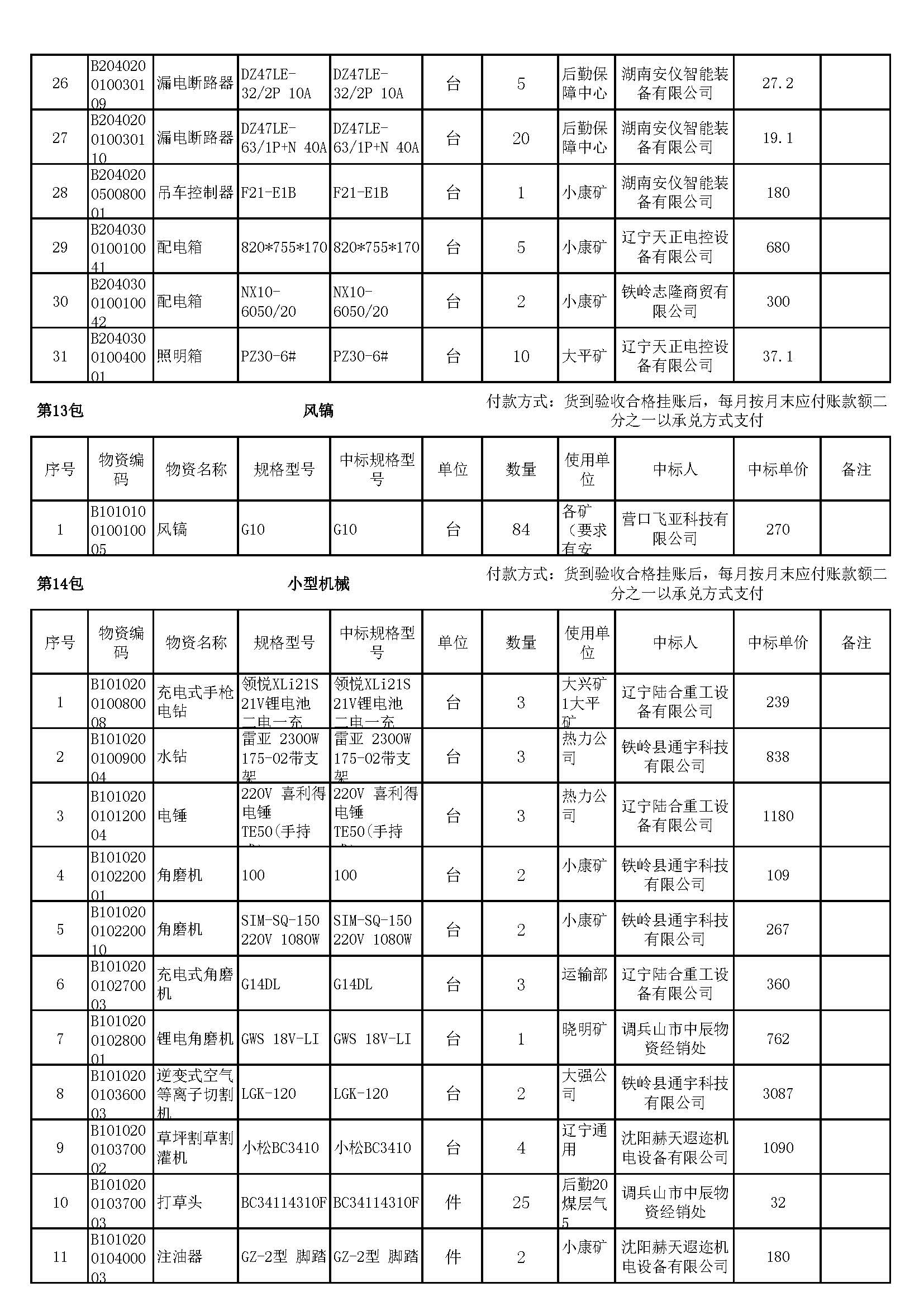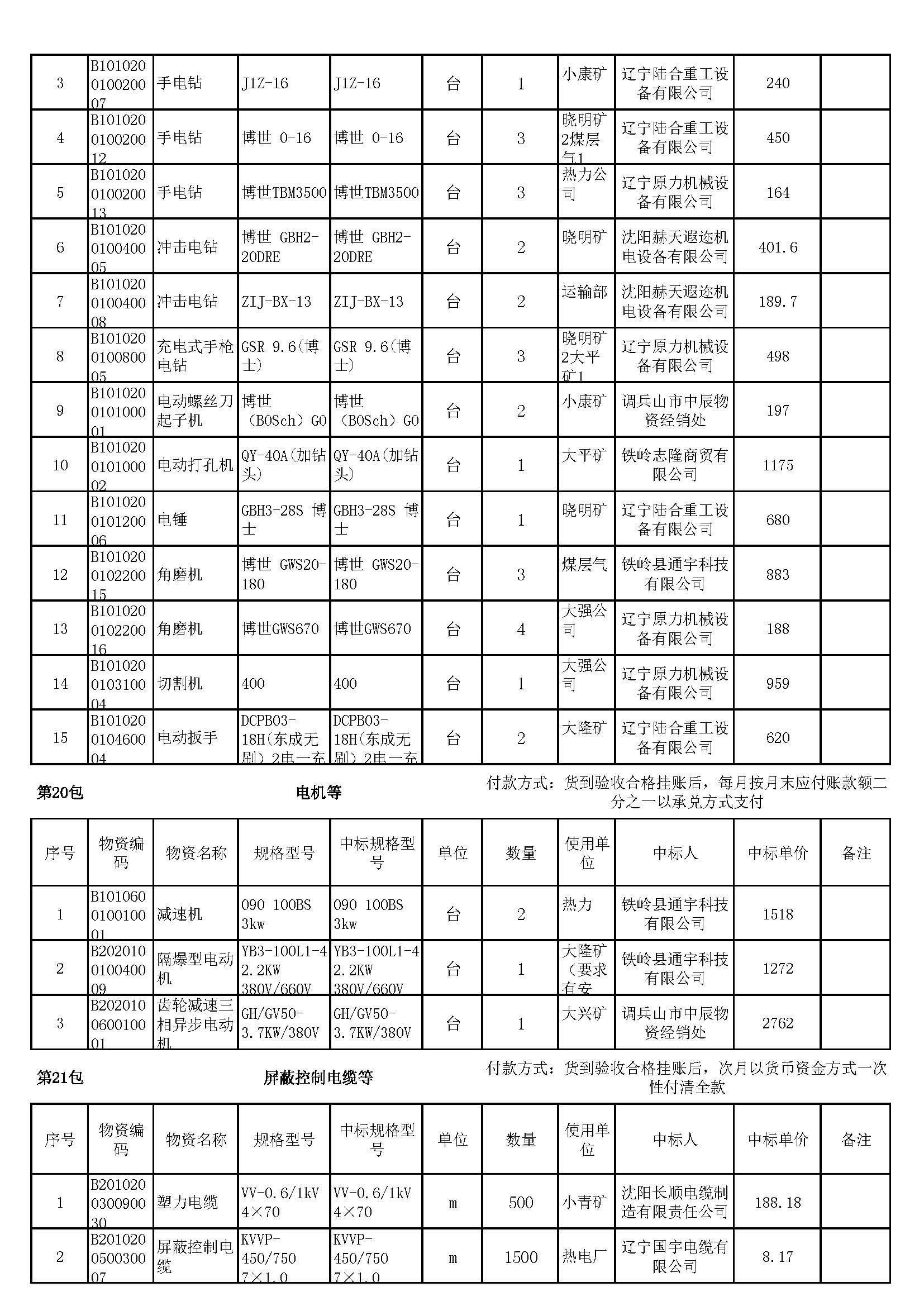 2023年7月19日材料中标结果公告