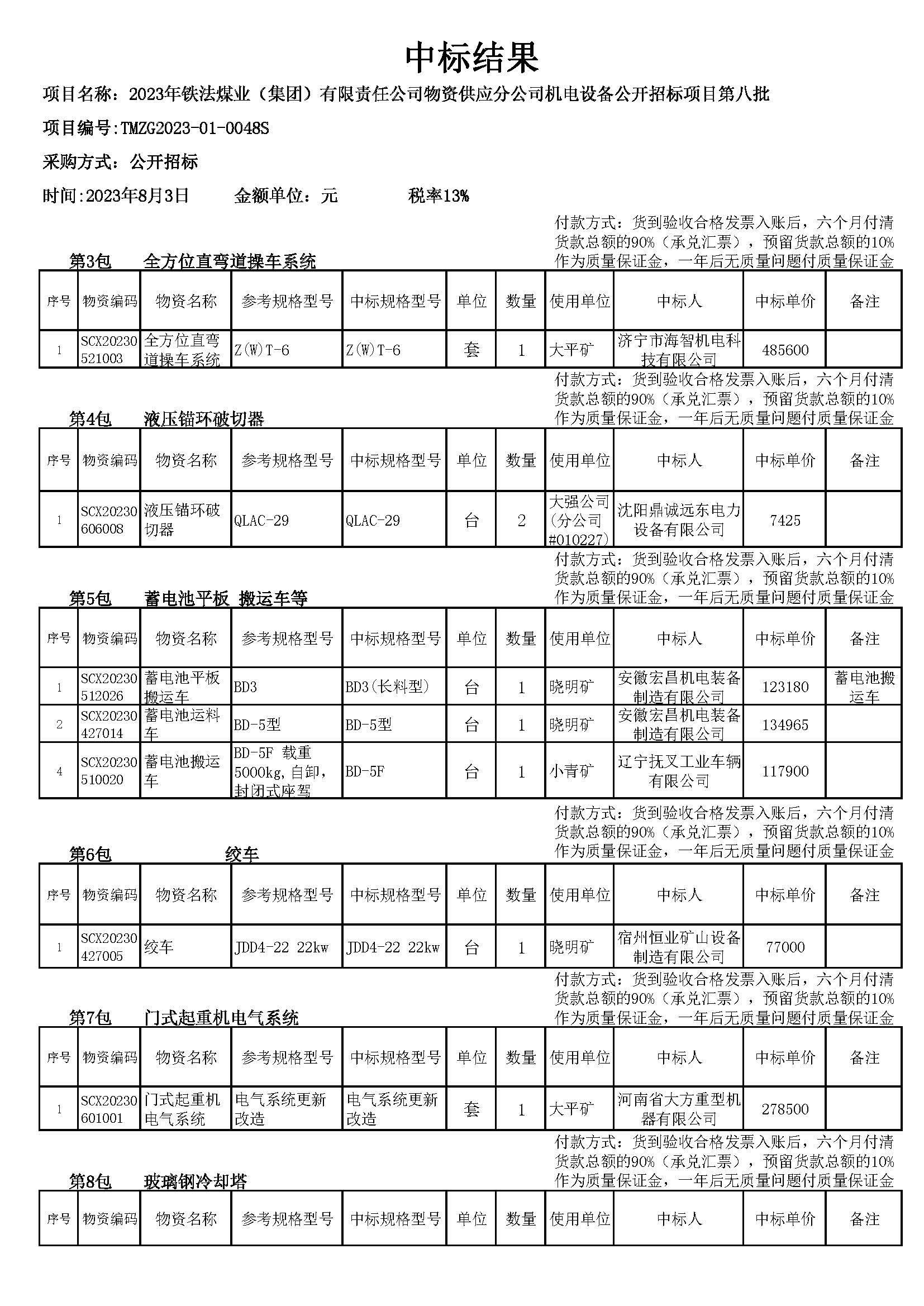 2023年8月3日机电设备中标结果公告(0048S)-1