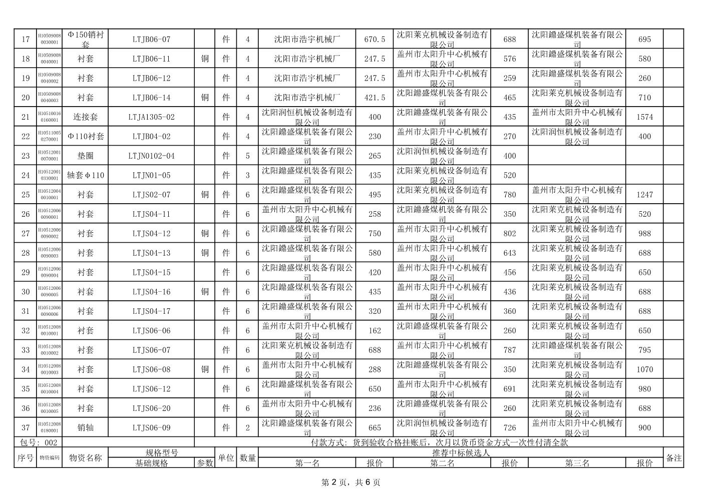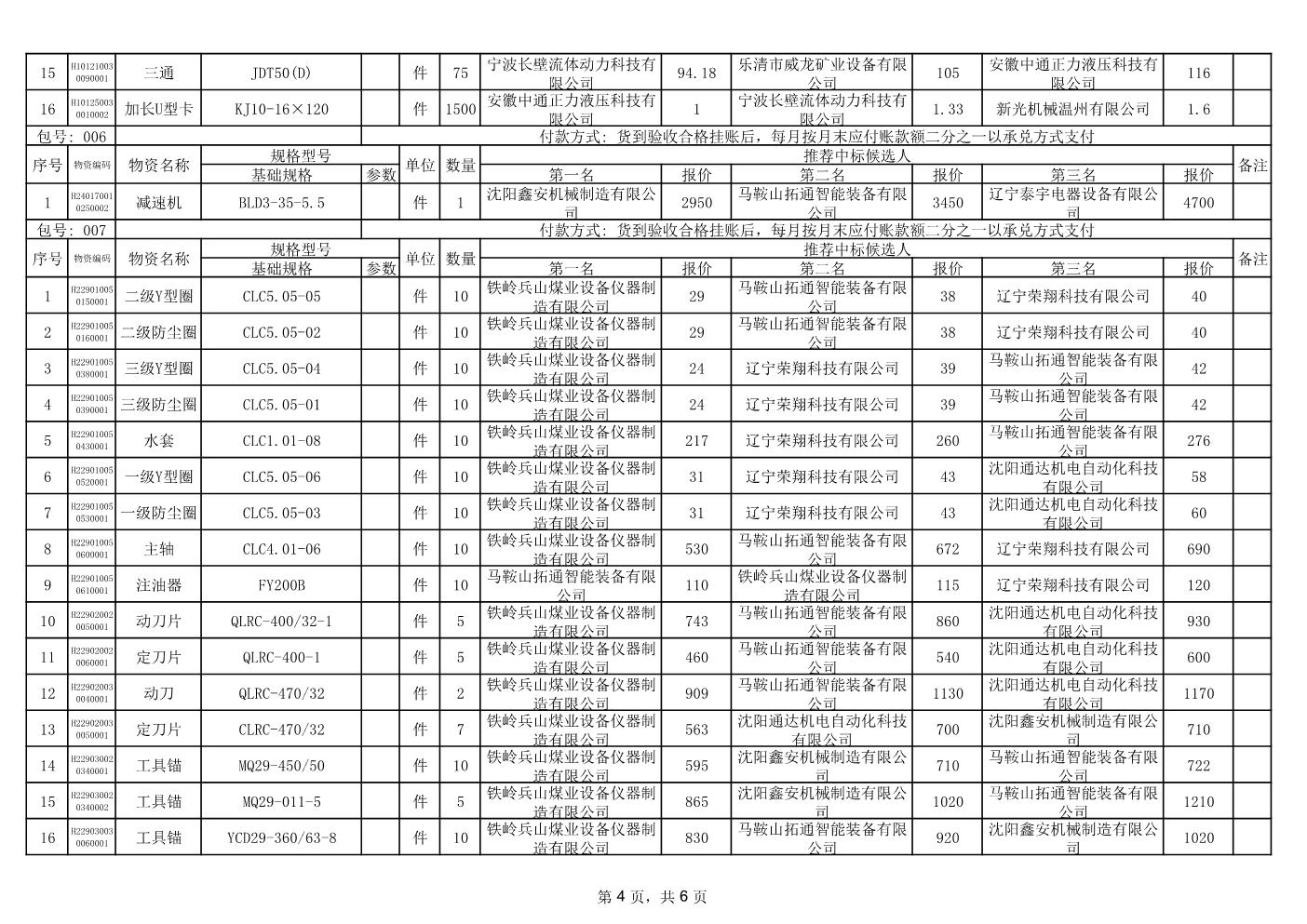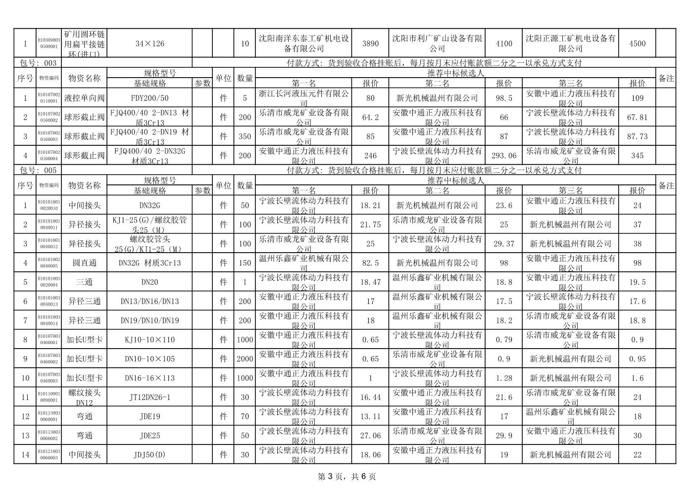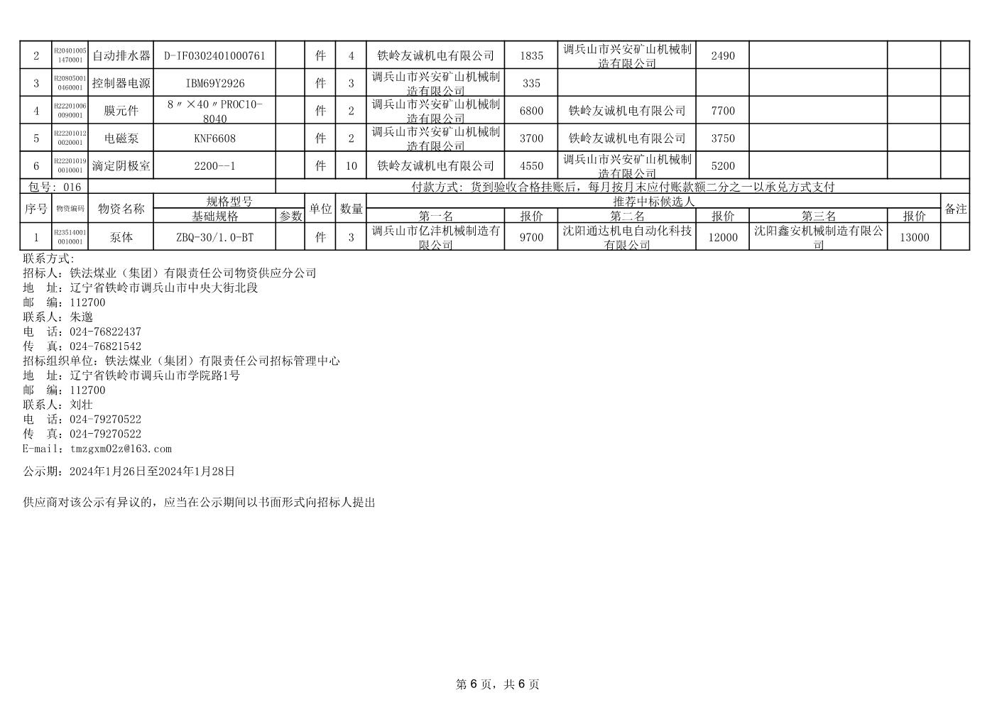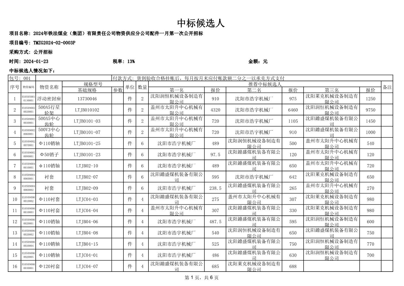 2024年1月23日配件中标候选人公示
