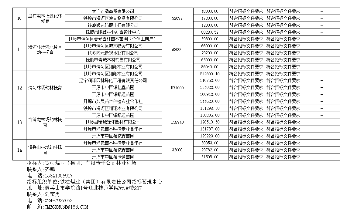 铁法煤业(集团)有限责任公司林业总场2024年第一批项目开标记录情况