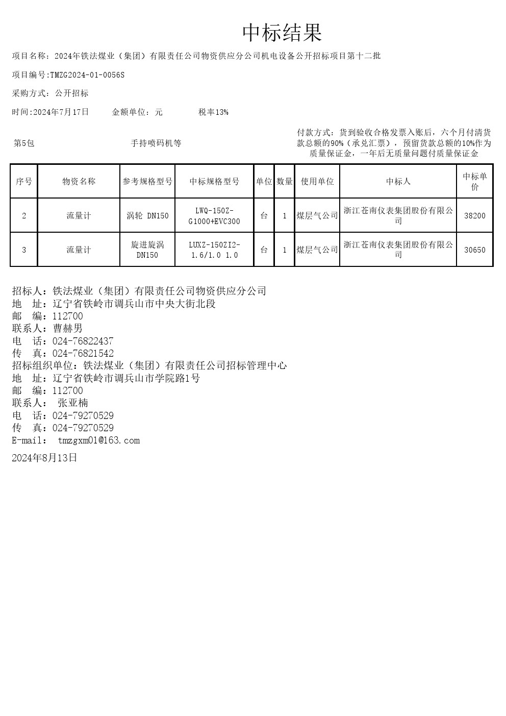 2024年7月17日设备中标结果变更公告(0056S)