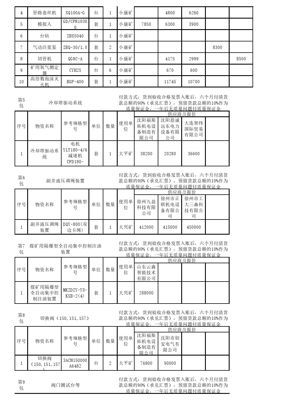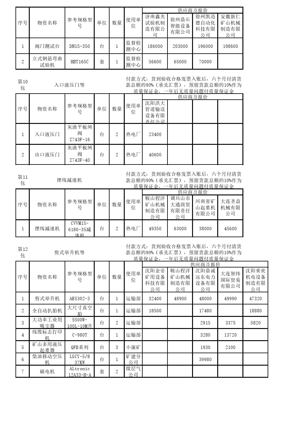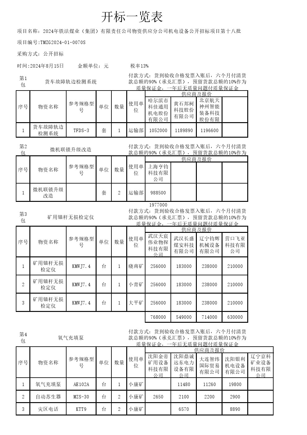 2024年8月15日机电设备开标记录表(0070S)