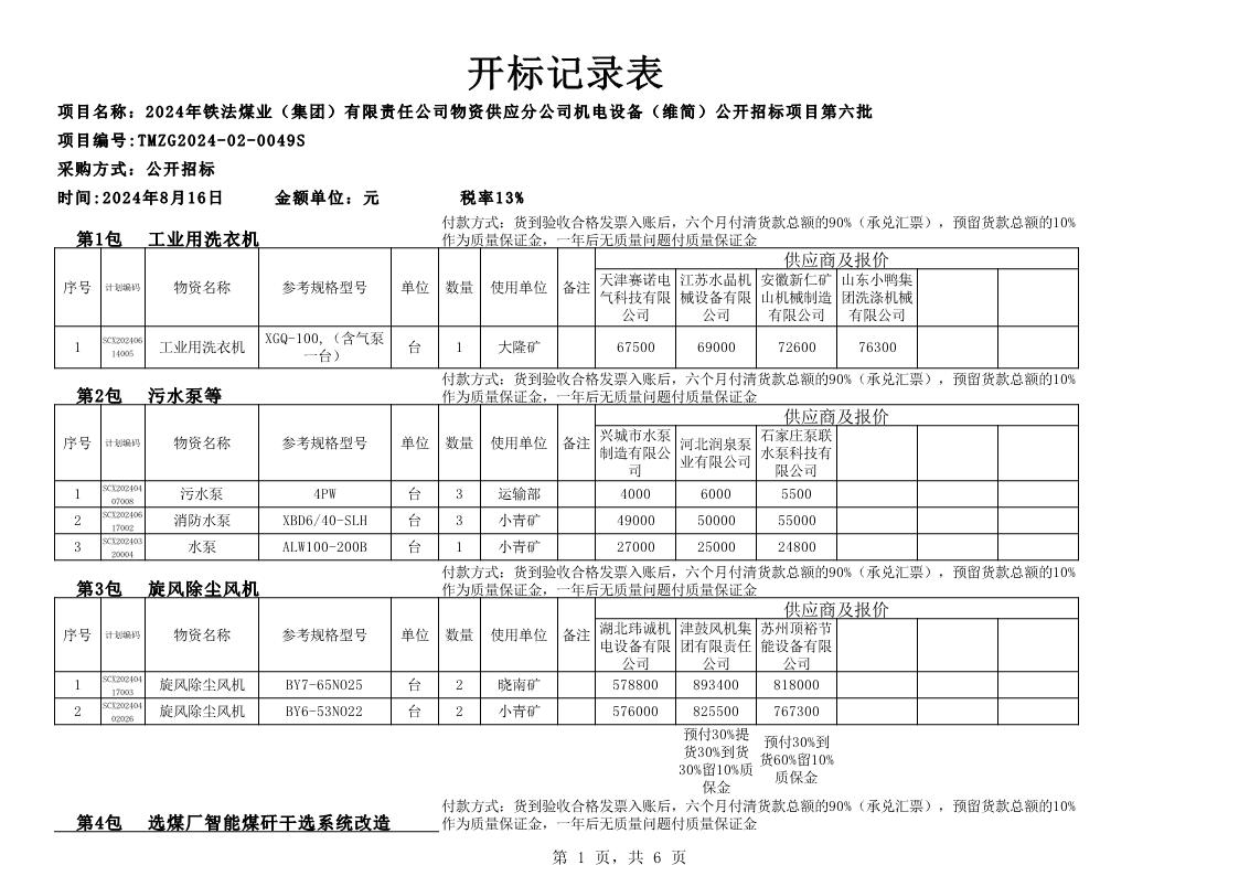 2024年8月16日机电设备开标记录表(0049S)