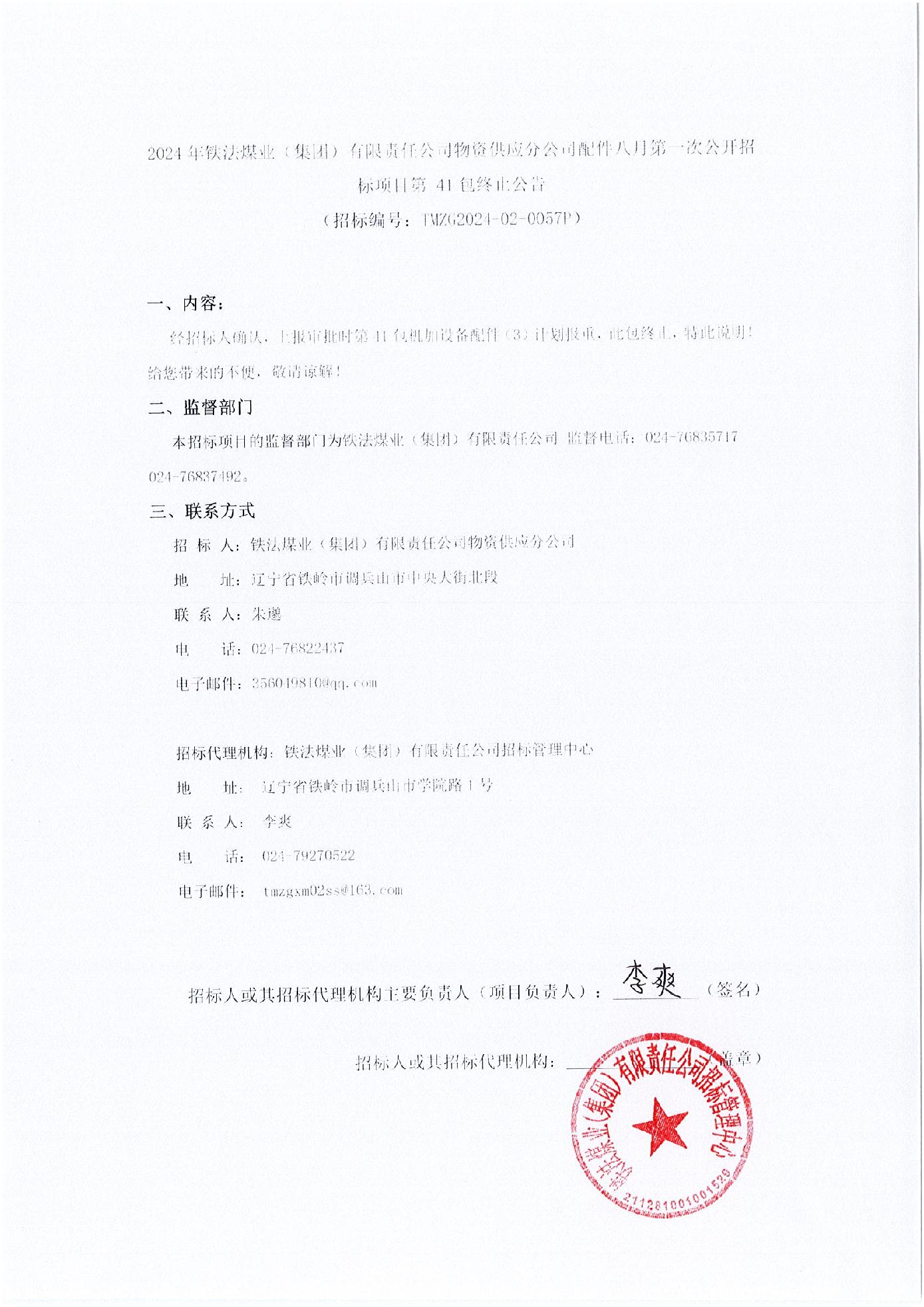 2024年9月6日配件八月第一次公开招标第41包终止公告