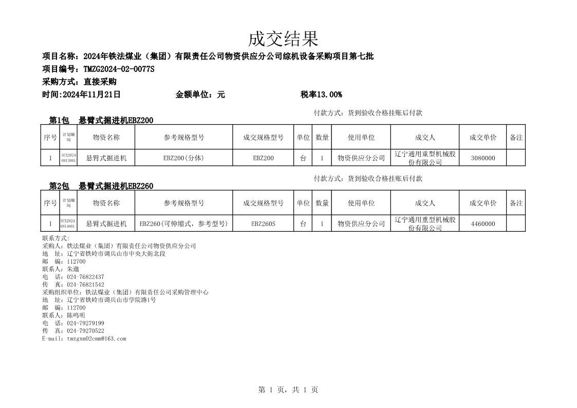 2024年11月21日综机设备成交结果公告(0077S)