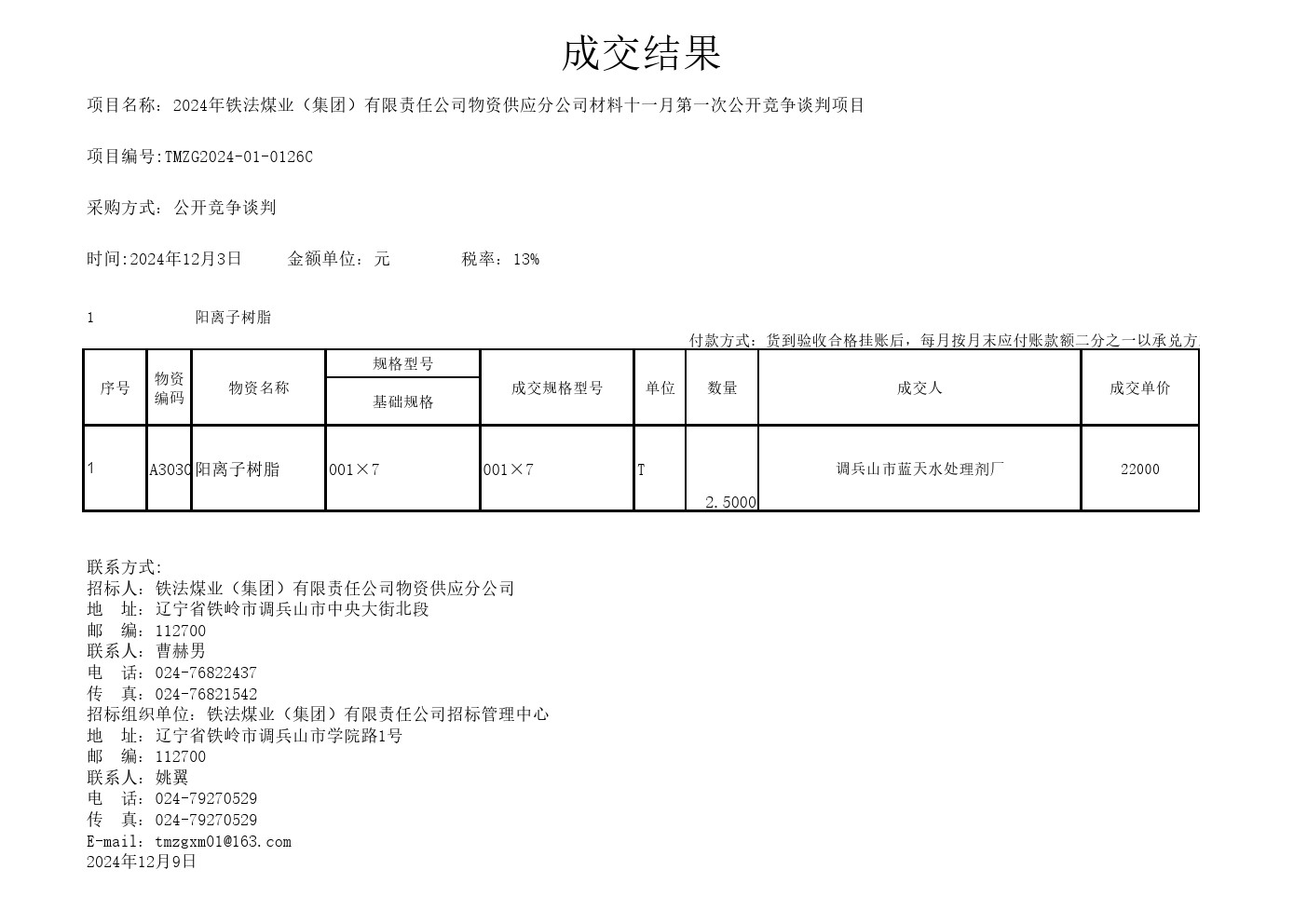 2024年12月3日材料公开竞谈成交候选人公告(0126C)