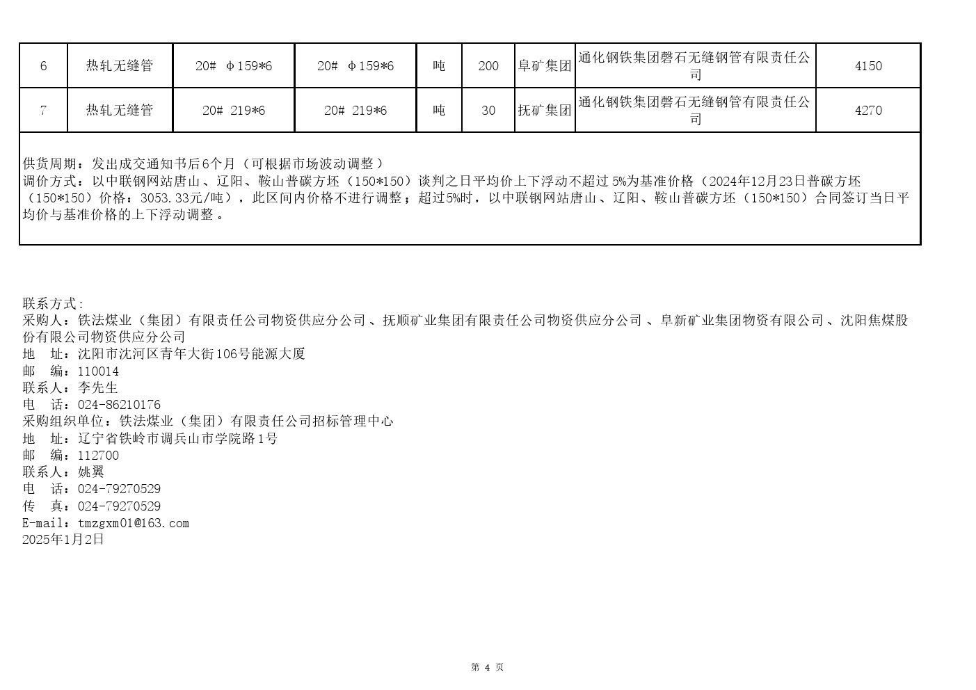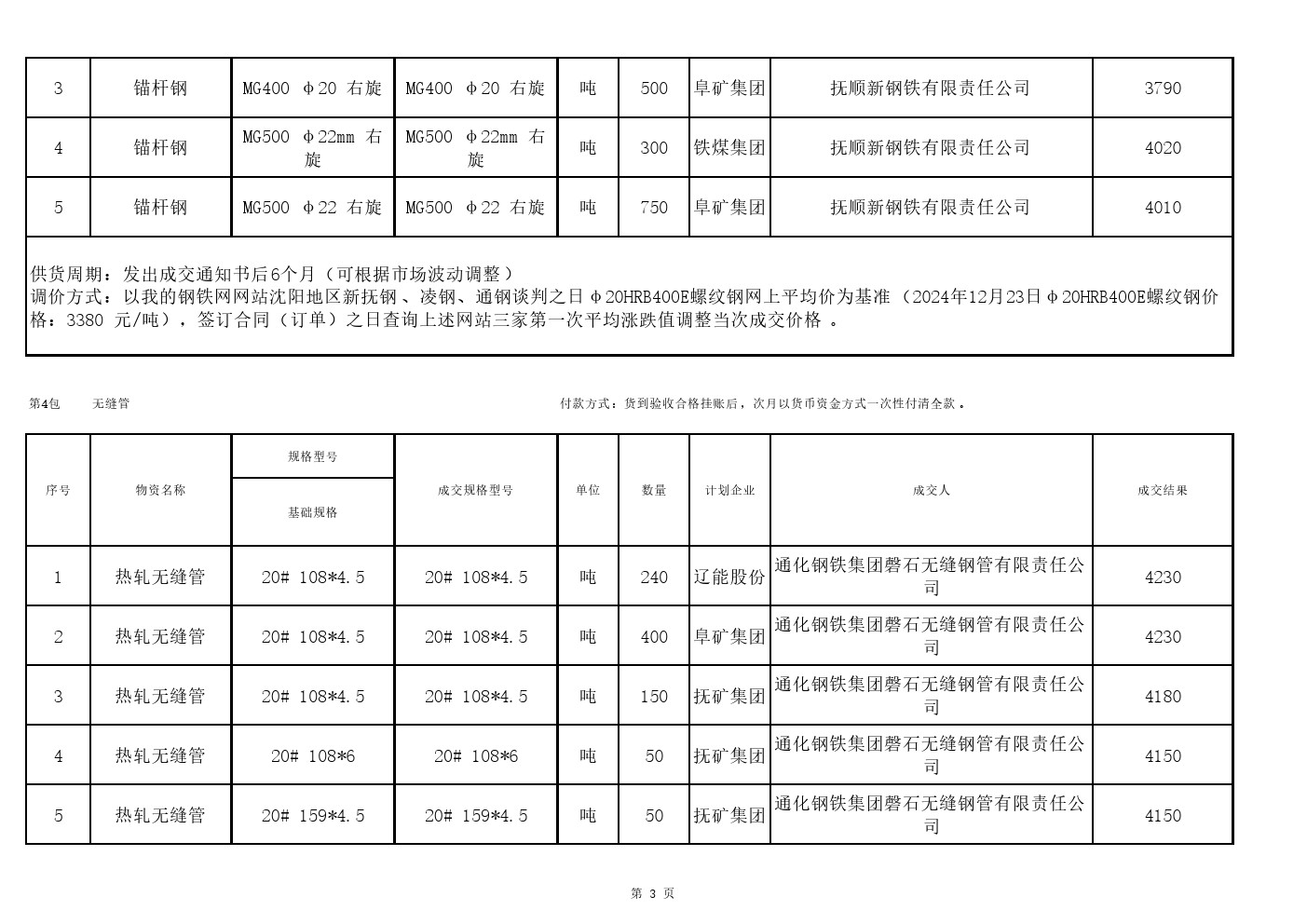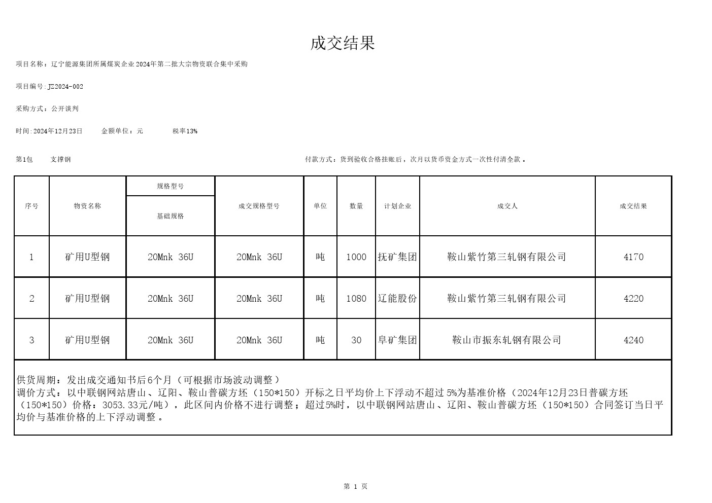 辽宁能源集团所属煤炭企业2024年第二批大宗物资联合集中采购成交结果公告(公开谈判)