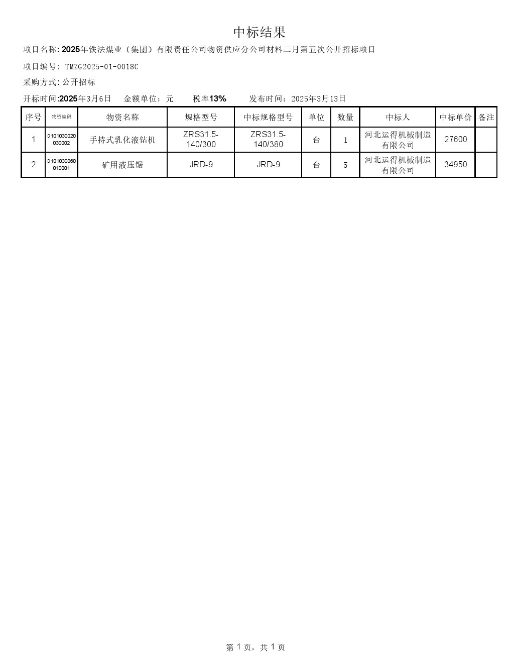 2025年3月6日材料公开招标第2包中标型号更正(0018C)