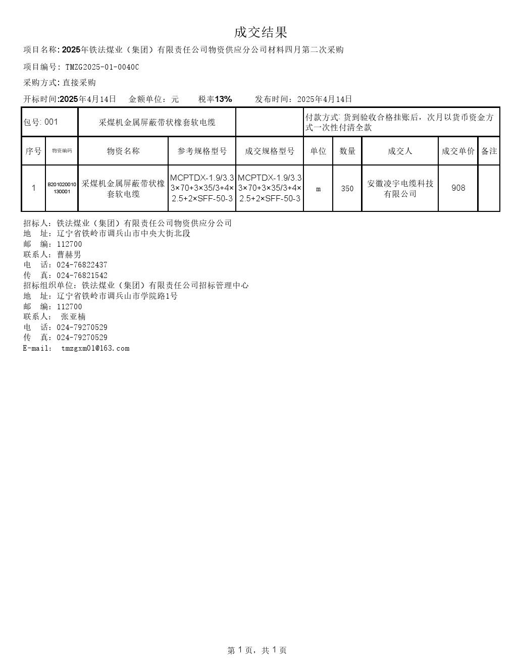 2025年4月14日材料直接采购成交结果公示(0040C)-1