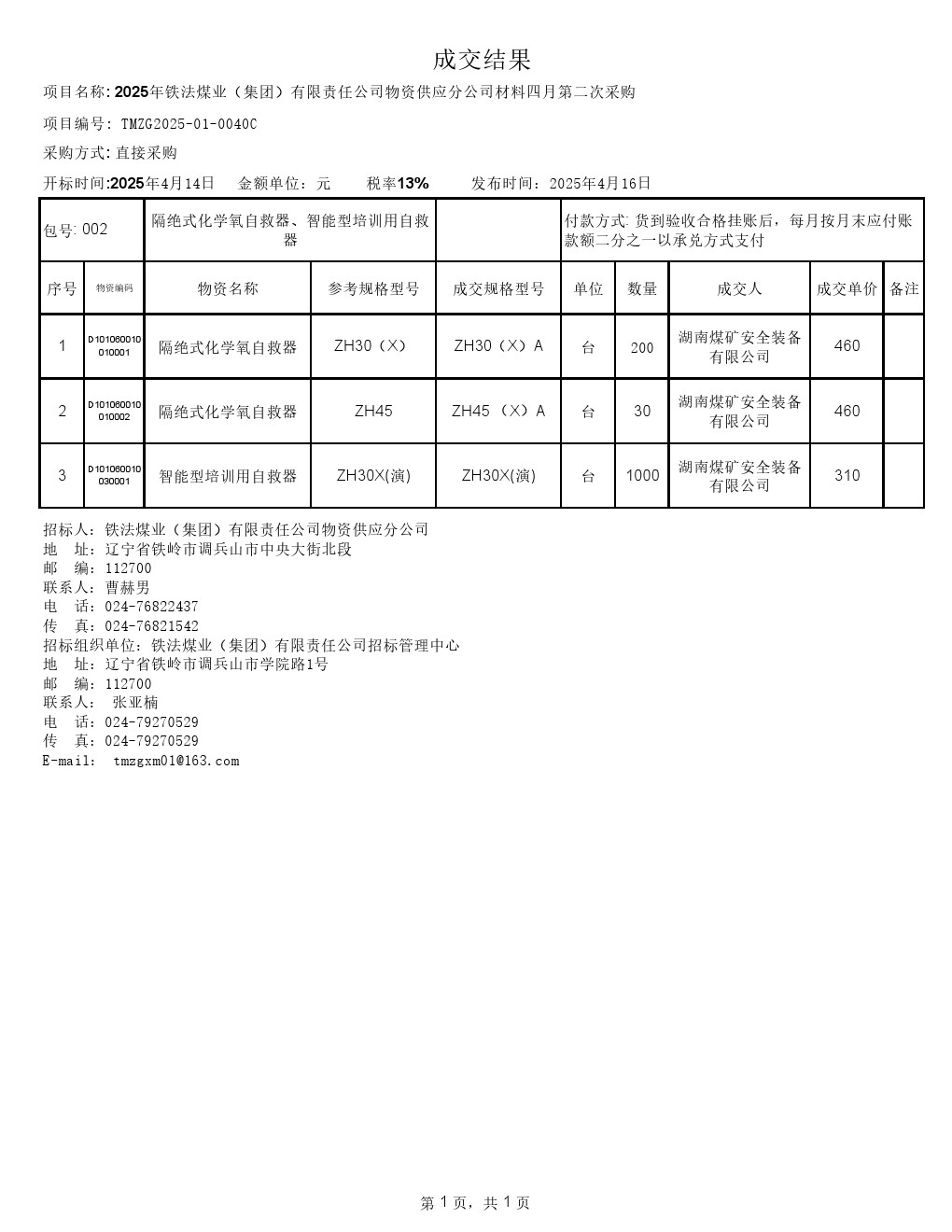 2025年4月14日材料直接采购成交结果公示(0040C)-2