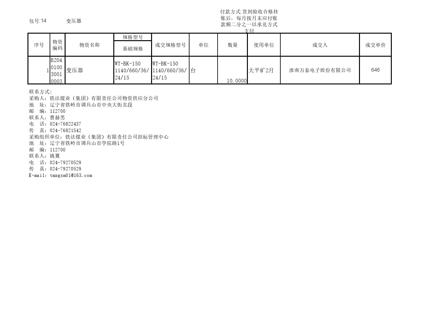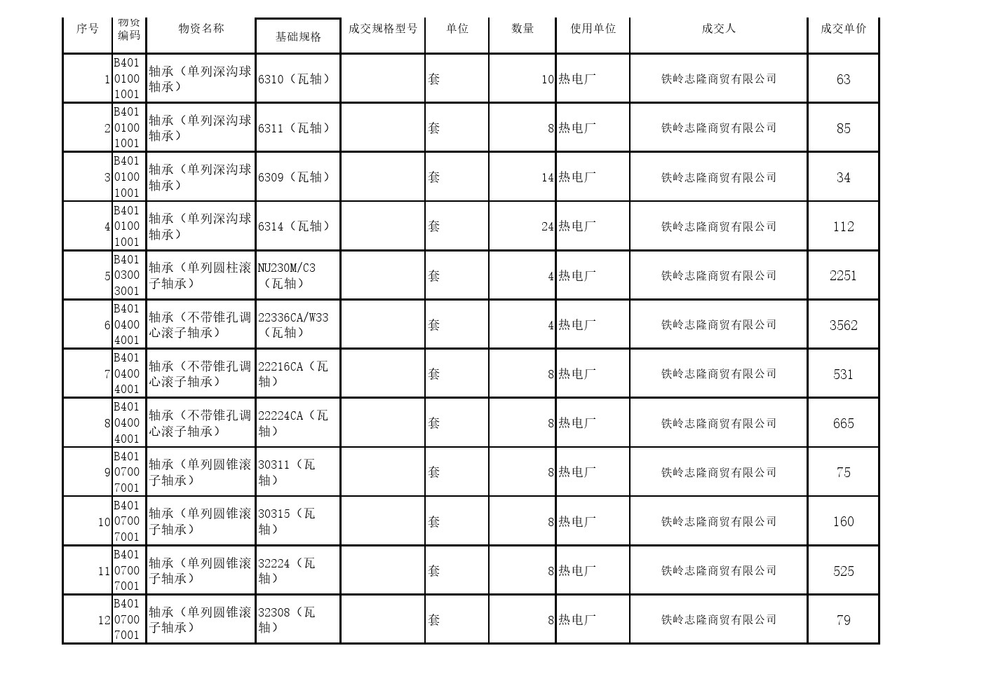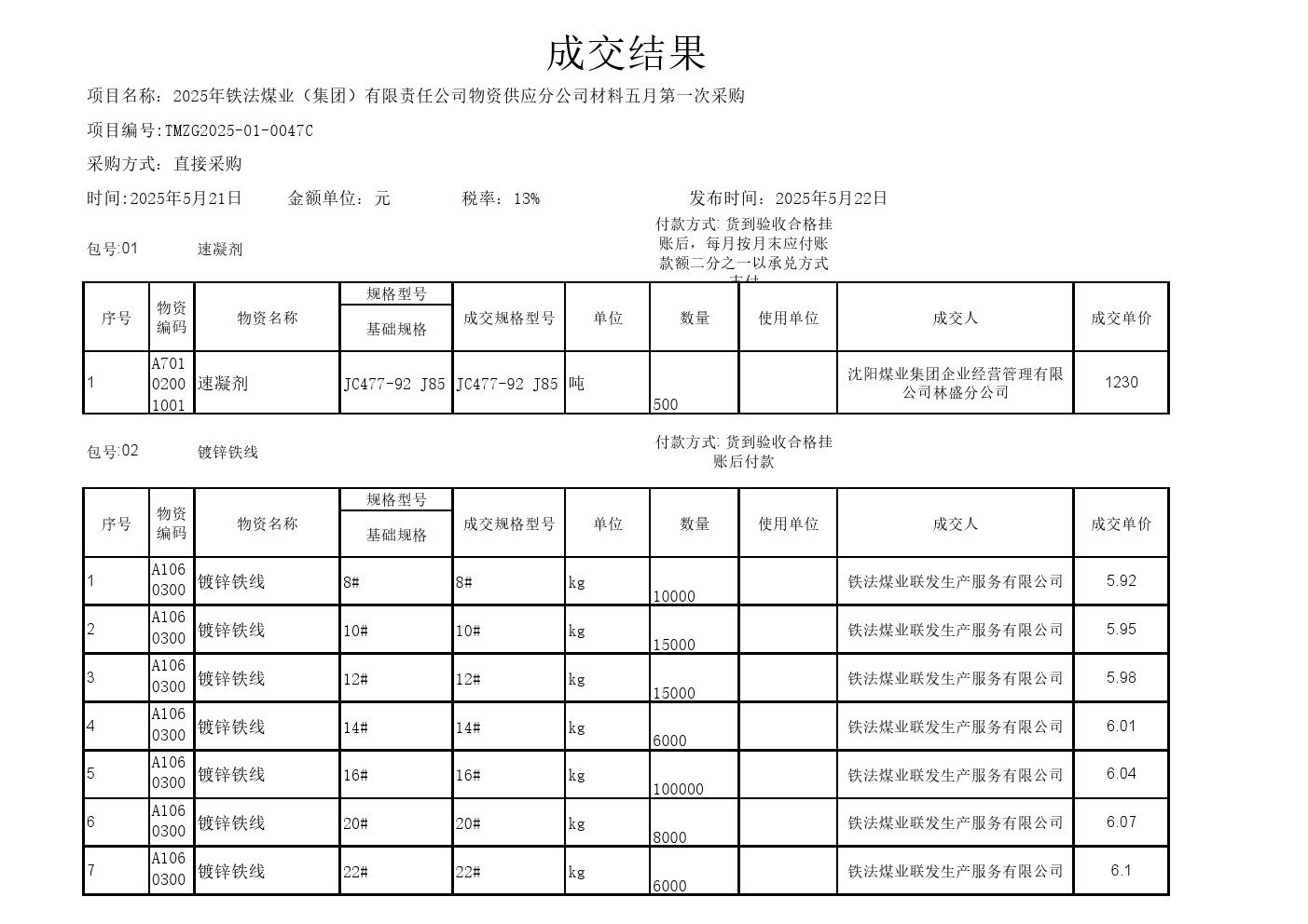 2025年5月21日材料成交结果公示(0047C)