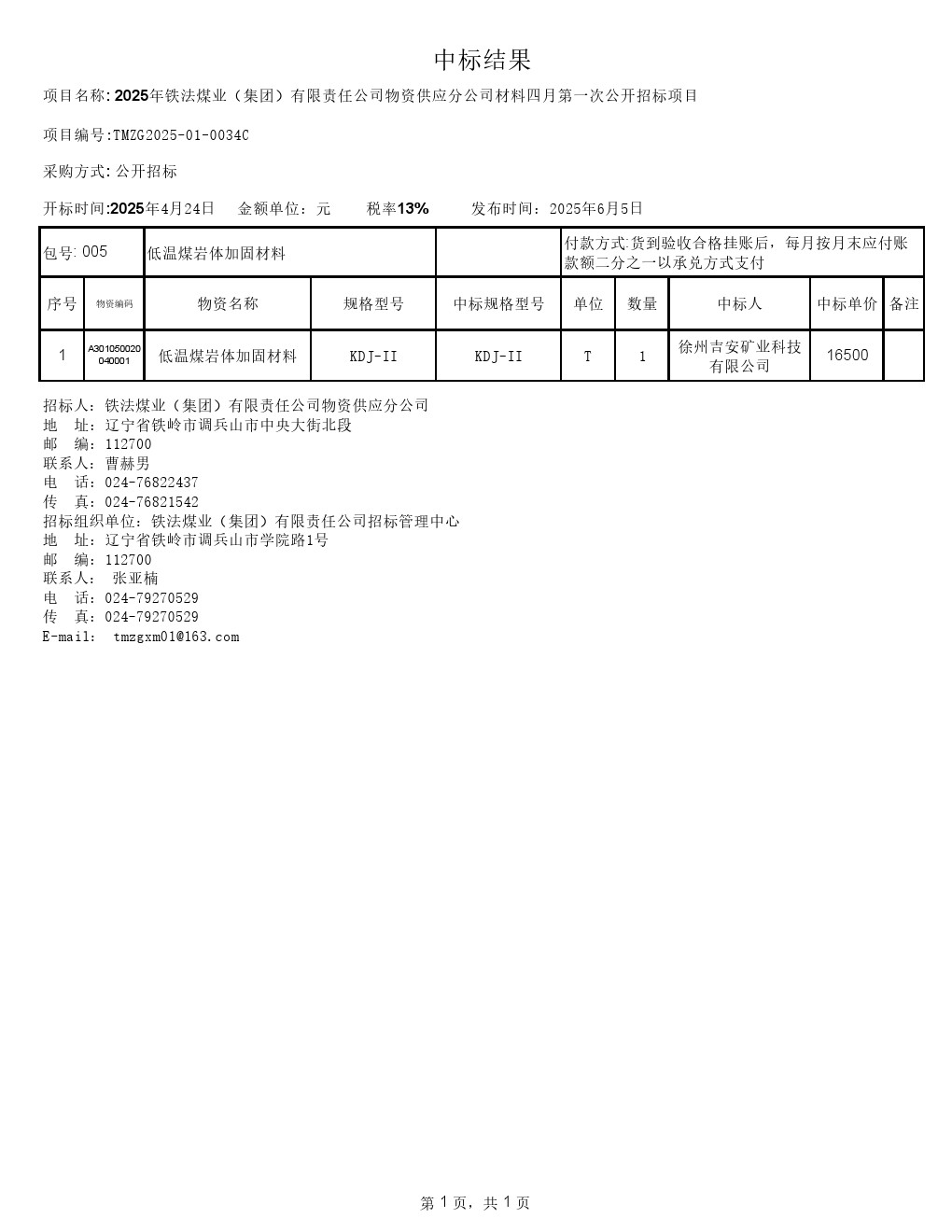 2025年4月24日材料公开招标中标结果公示(0034C)